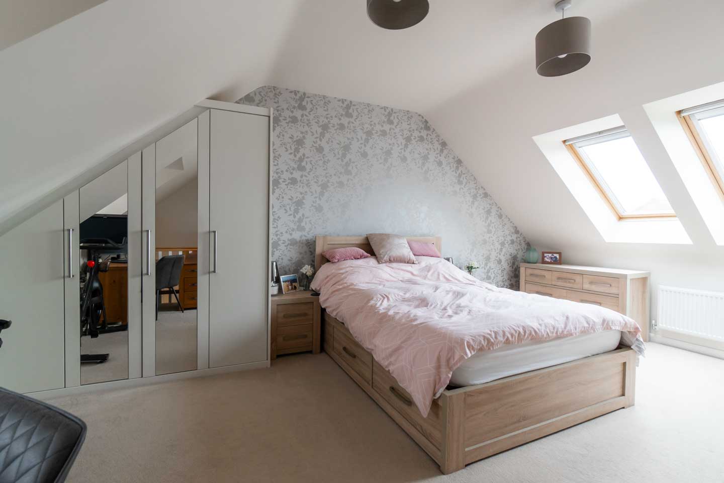 A stand out feature of this design is the master suite. Starting with a private lobby and useful landing space with staircase rising up the the vast main bedroom. Enjoying a dual aspect with windows to the front and rear, there is plenty of room for a bed of any size, fitted wardrobes, space for multiple extra items of furniture and to one corner is a modern ensure shower room.