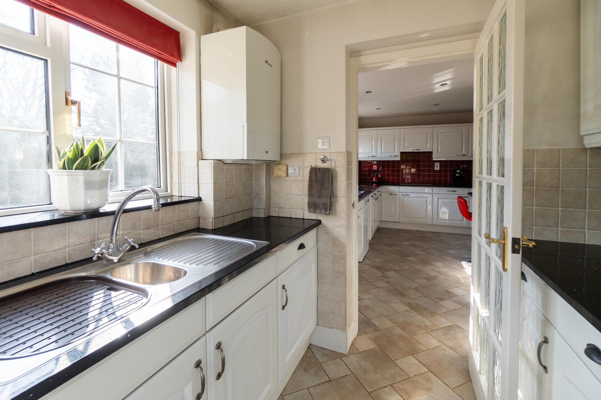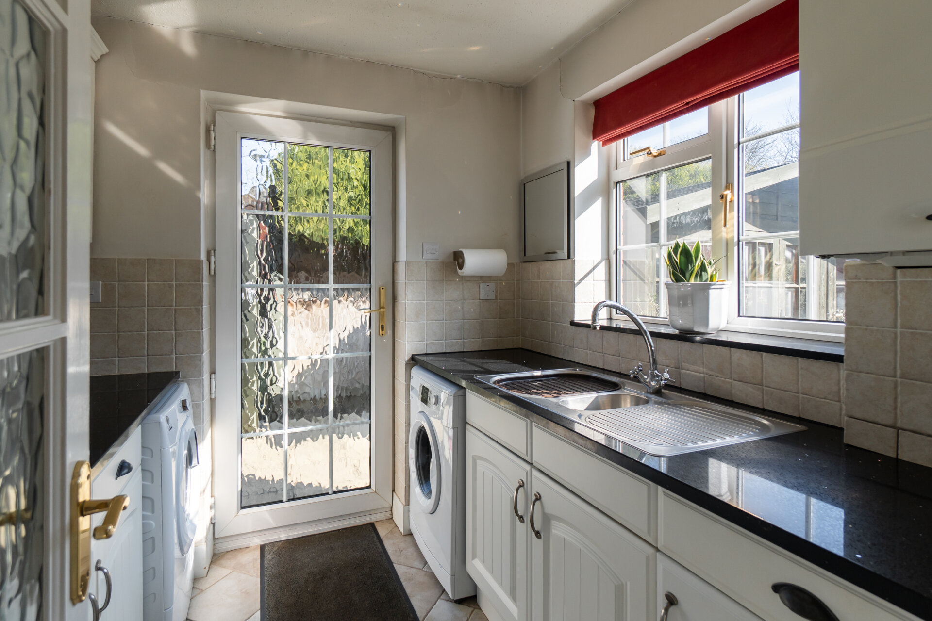Across the rear of the property, the kitchen is fitted with a modern range of units and flows through to a separate dining room — both rooms benefiting from attractive tiled flooring that ties the spaces together neatly. Completing the ground floor, the utility room provides handy additional storage and direct access out to the garden.