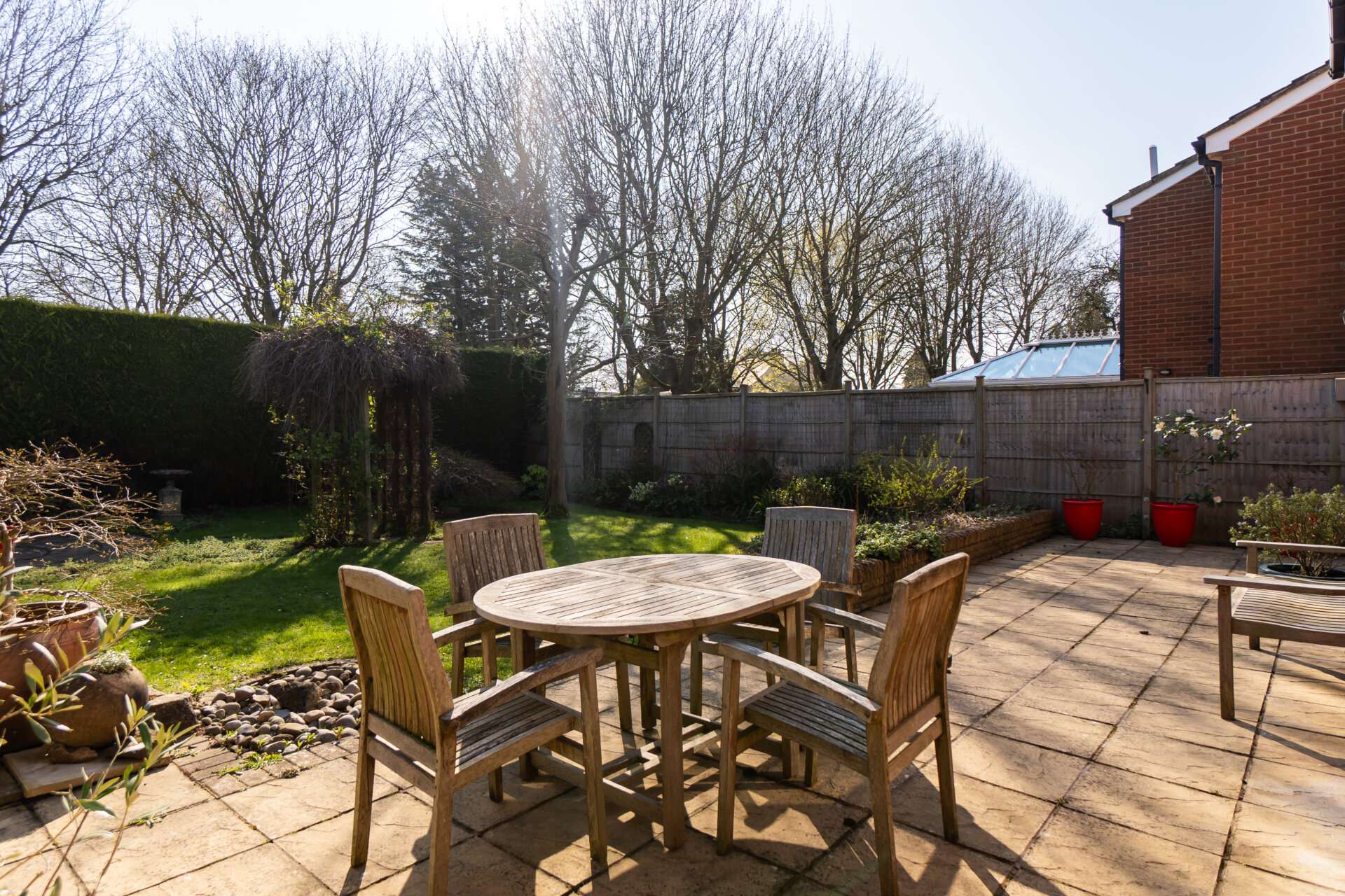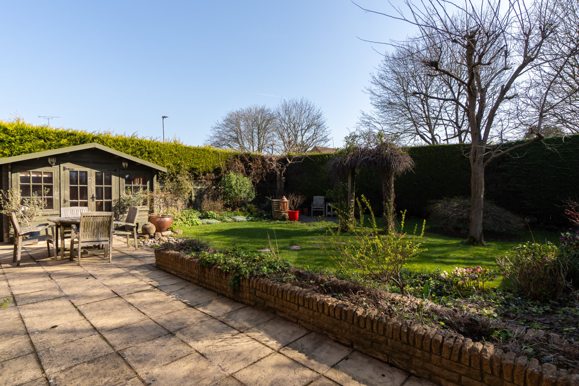 The rear garden is impressive and set to bloom in the warmer months with an array of well stocked flower beds, borders and a mature established hedgerow surrounding. There are various seating areas to capture the sunlight throughout the day and there is plenty of space to offer further scope for extension to the side or rear.