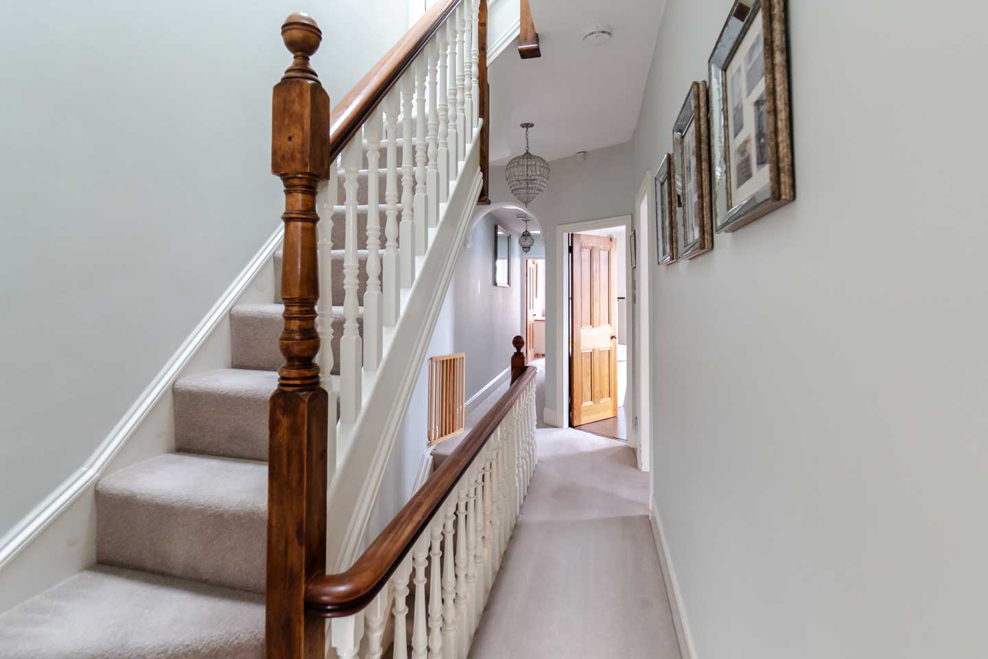 The first floor reveals a vast landing leading to three double bedrooms and a huge family bathroom. The master bedroom, positioned at the front, is wonderfully bright with windows on two aspects and views toward the popular Welland Park. Bedroom three occupies the middle position, also with dual aspect, while bedroom four sits at the rear. A second staircase rises to the second floor, home to a superb guest suite (bedroom two) with built-in wardrobes and a modern ensuite shower room. Easy access to a large loft space provides excellent storage.