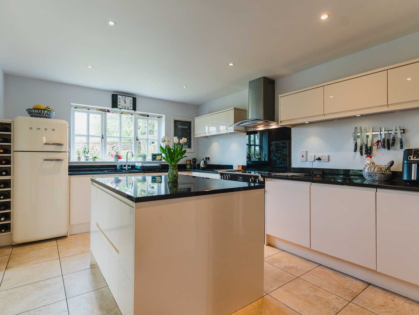 Moving into the kitchen you will find a generous range of matching cream units to base & eye levels, having granite worktop surfaces and a exceptional central island. Noisier white goods such as a washing machine can be shut away in the utility which lies off the kitchen and also provides additional external access.