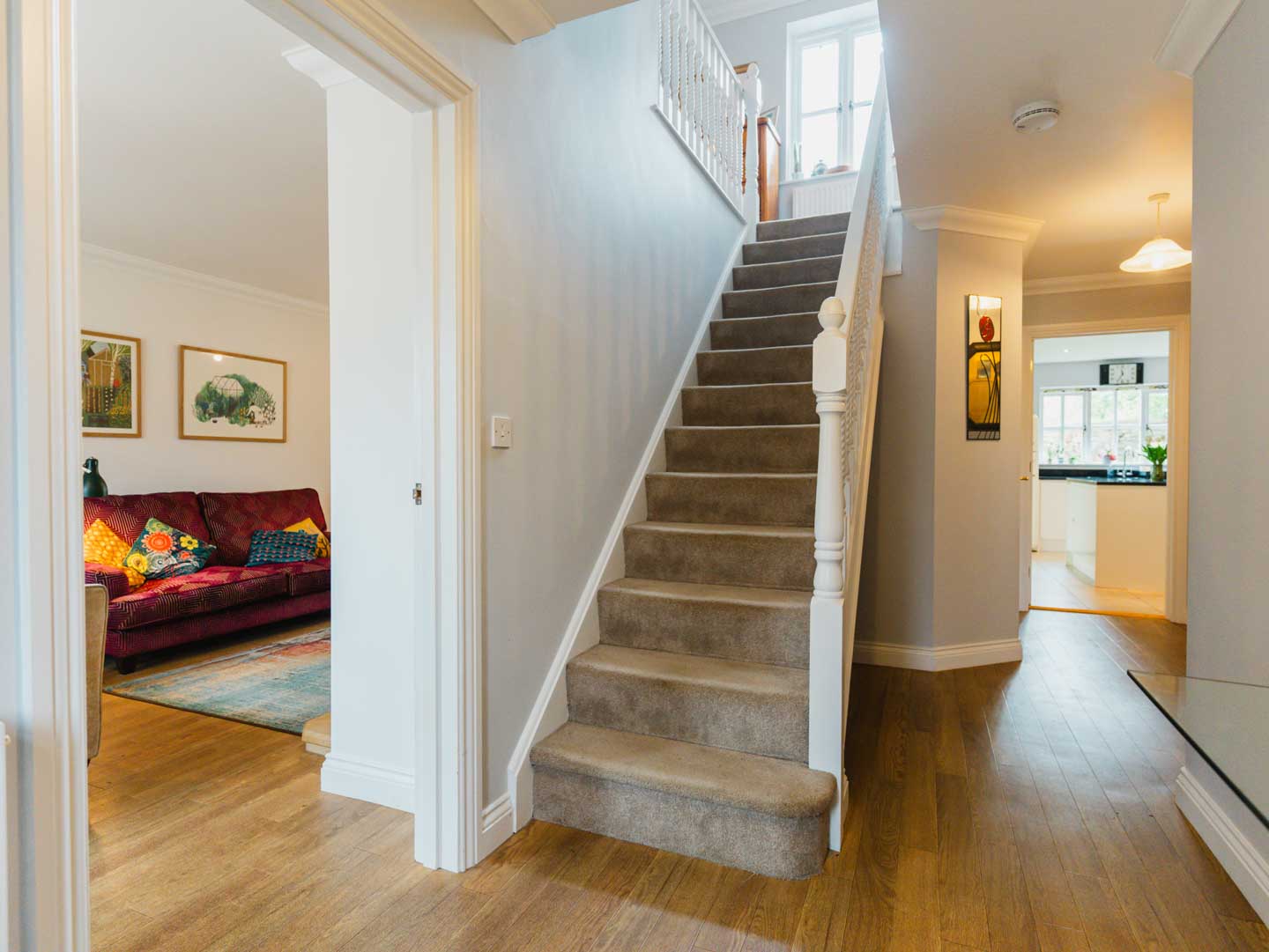 On entering the home, you are met instantly by the spacious hallway, positioned centrally being double fronted and shows the quality of the property straight away with wooden flooring flowing into both the dining room and living rooms, a cloakroom wc, staircase rising to the upper floor and access through to the further accommodation at the rear.