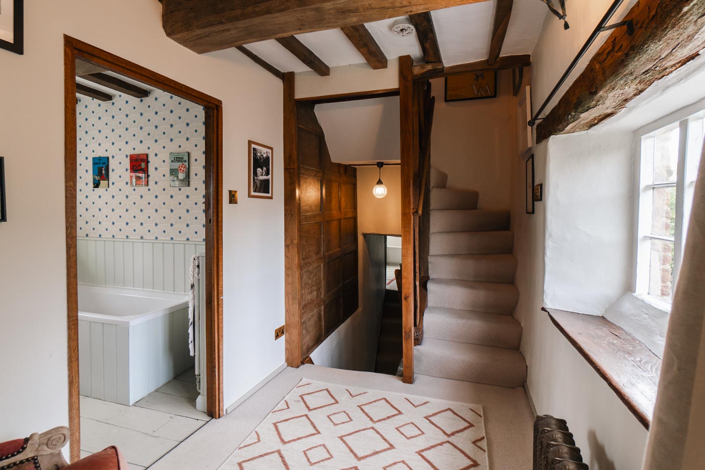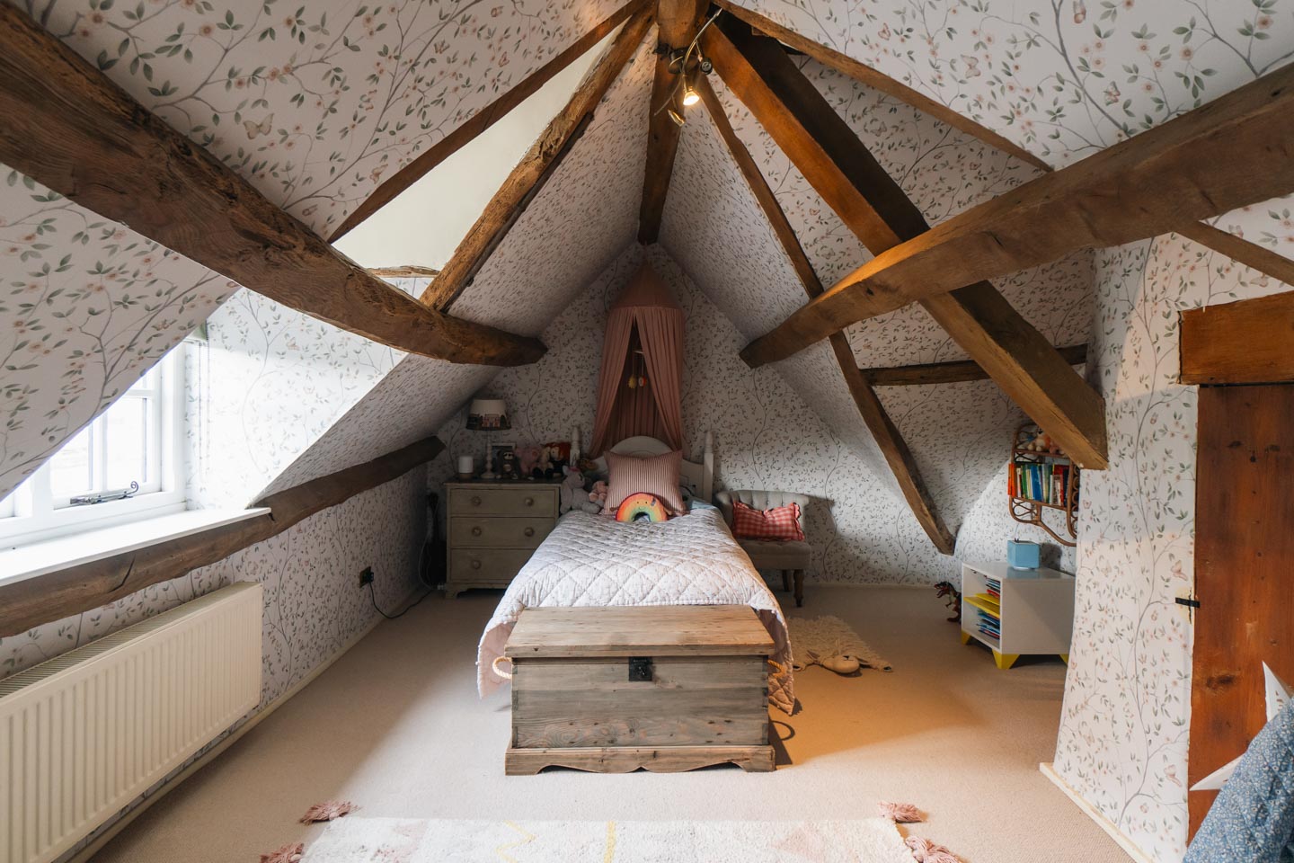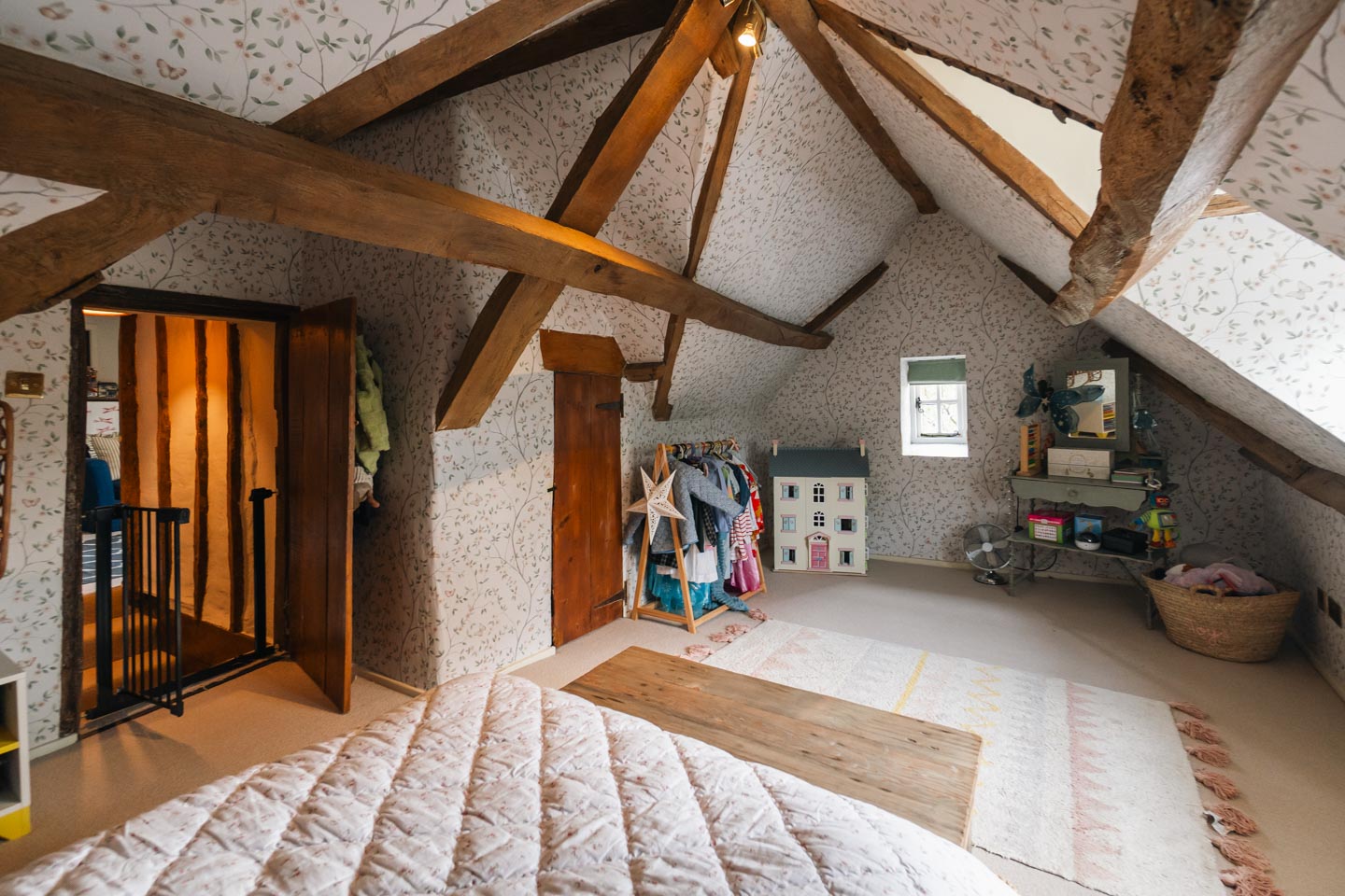 Upstairs, the principal bedroom suite is a lovely private space with a vaulted ceiling, dressing room and an impressive en suite bathroom. A second bedroom also benefits from its own cleverly designed en suite, whilst a stylish family bathroom serves the remaining rooms. The landing itself is quite the spectacle with the unique staircases, original woodwork, curved walls, built in characterful cupboards and various levels! On the second floor, two further well-proportioned bedrooms offer flexibility for guests, children, or home working.
