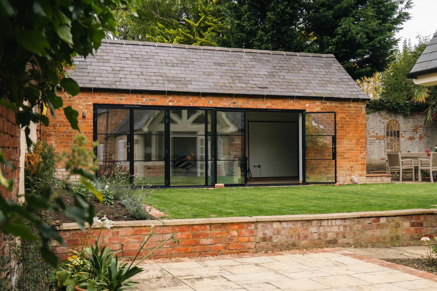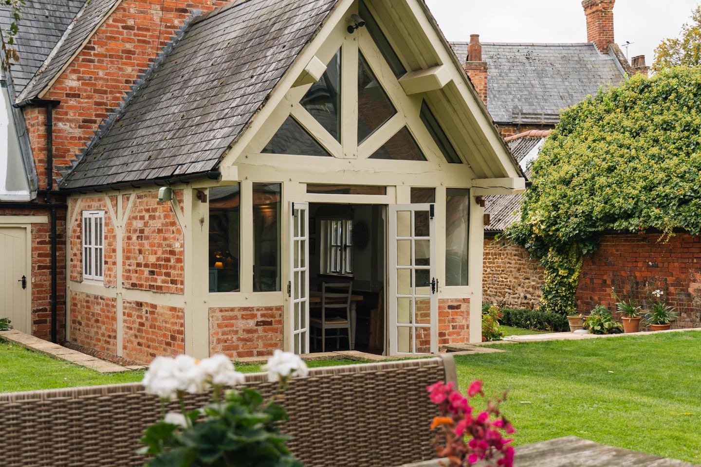 The gardens wrap gracefully around side and rear of the house, mostly laid to lawn with mature planting alongside various patio areas. The garden attracts a lot of sunlight, particularly in the afternoon through to the evening after it has risen on the front side of the house, making it perfect for entertaining into the latter part of a day. To the rear of the garden lies a handsome brick and slate outbuilding with beautiful crittall doors providing access for modern home working or creative pursuits. There is wooden flooring, a valued ceiling, lighting, power and a large wood burning stove being a focal point to one corner.