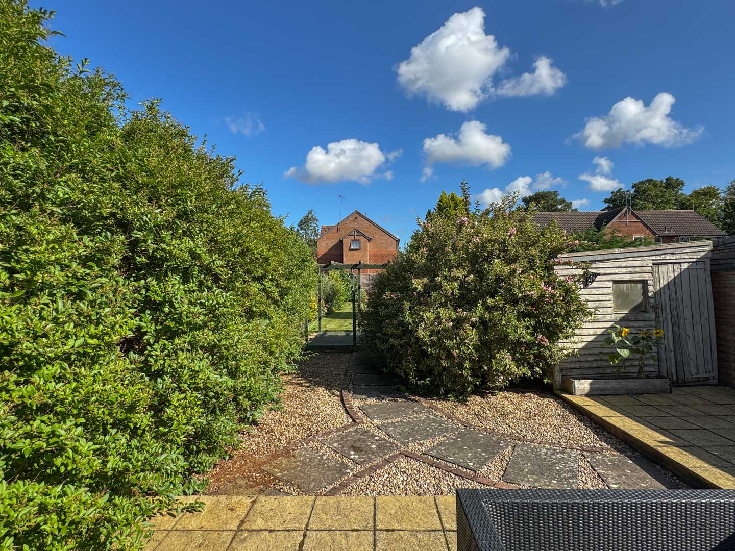 Outside, the property enjoys well maintained gardens. Set back from the road and behind a low lying brick wall, the front garden requires low maintenance. The much larger than average rear garden forms another really impressive feature of this home. Offering various patio and seating areas, well stocked mature shrubbery and borders, a further lawned area and timber sheds. Gated access is directly from the right of the house at the front.