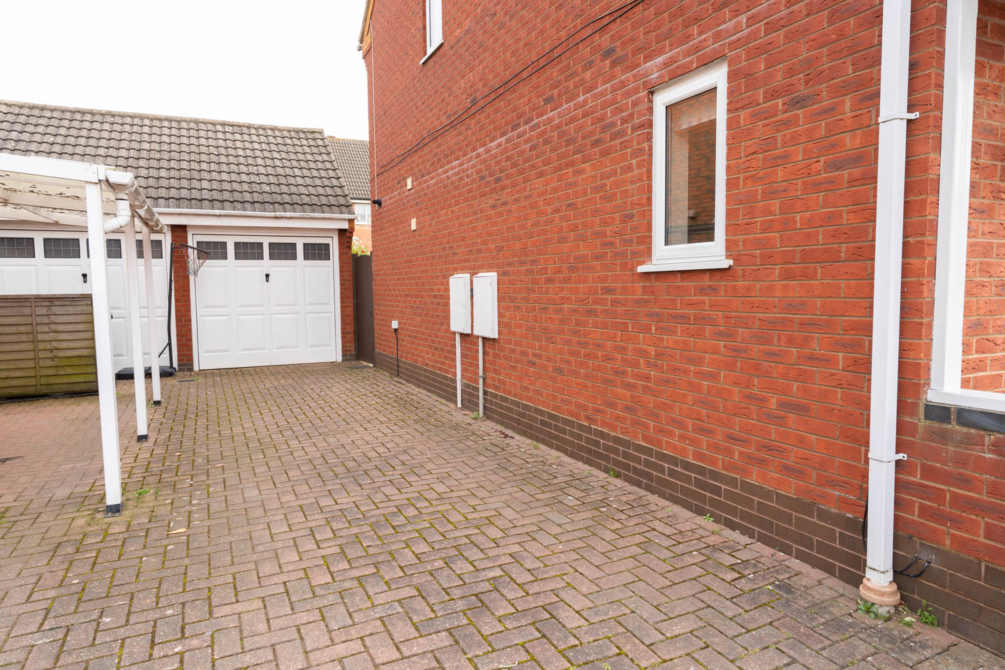 To the front, a small slate garden leads to a storm porch, with a generous driveway running in front of the garage to provide off road parking for two cars. Gated pedestrian access leads to the rear garden, which is laid mainly to lawn with paved patio areas and is enclosed by timber lap fencing. A private and low maintenance outdoor space. The detached garage is brick built with an up and over door, power and lighting, also having a handy pedestrian door to the side.