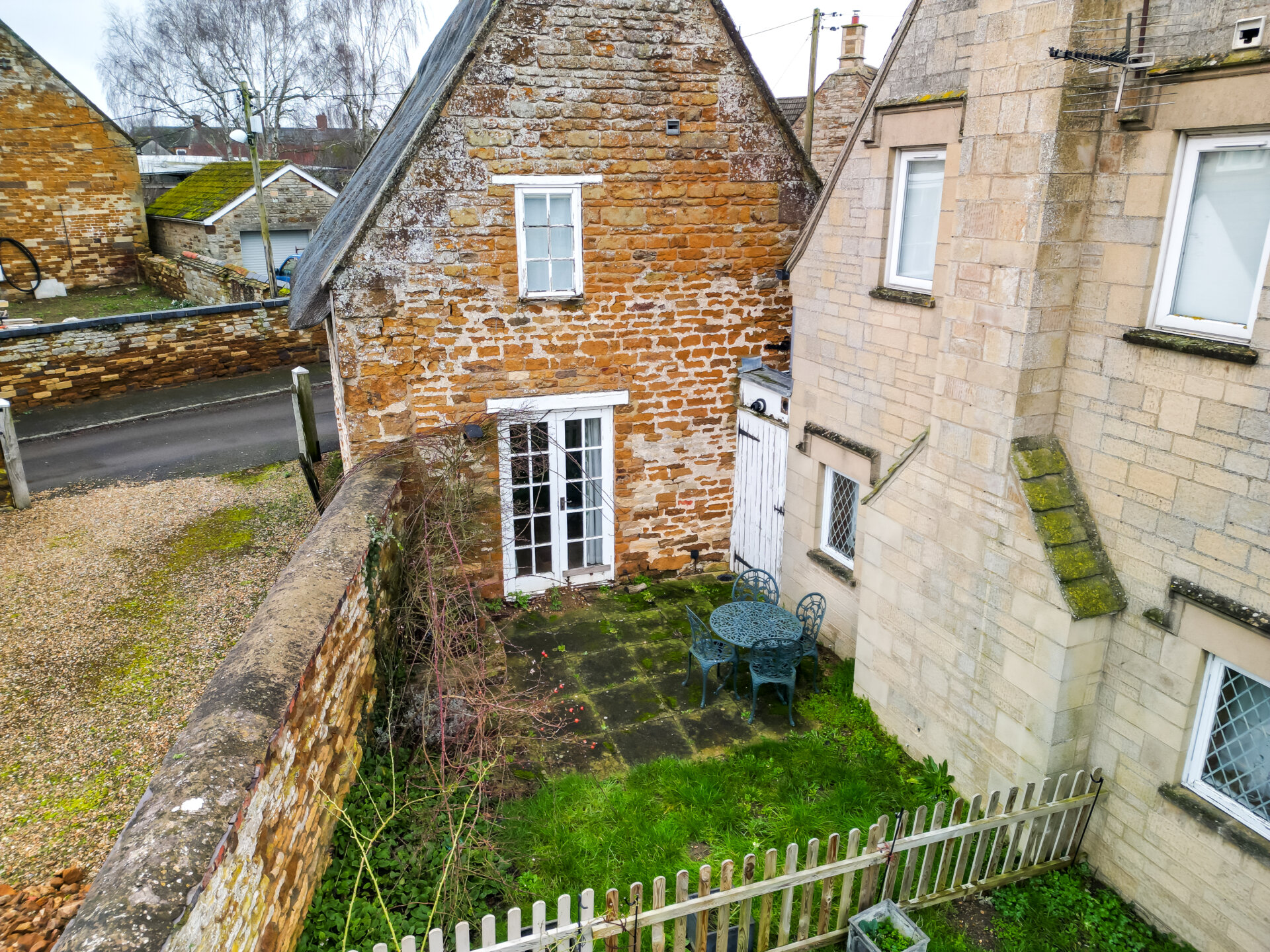 The rear courtyard garden is compact and easy to maintain, enjoying excellent afternoon sun. It adjoins the neighbouring garden (No. 7) and is separated by a low picket fence, creating a friendly, open village atmosphere rather than complete enclosure.