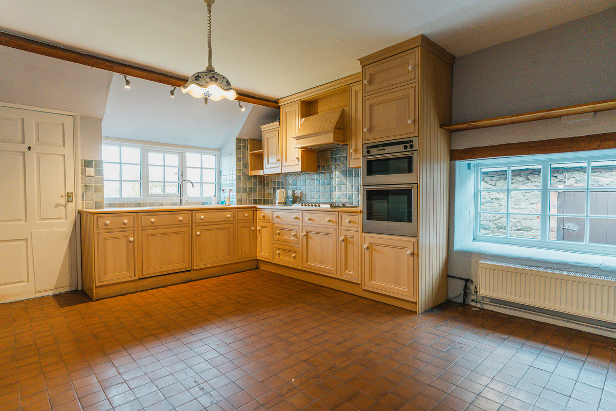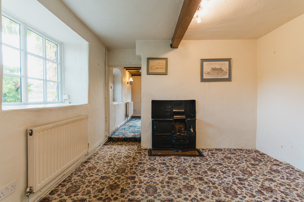 The ground floor accommodation includes an entrance porch that opens onto a snug that features deep set windows and an original cast iron range. Leading from the snug is a cloakroom which in turn leads to a useful ground floor shower room. The lounge is a good size room that is triple aspect allowing lots of natural light to enter the room, and has a beamed ceiling and an open stone fire. From the lounge is a workshop which could be developed to form a well proportioned home office/study.