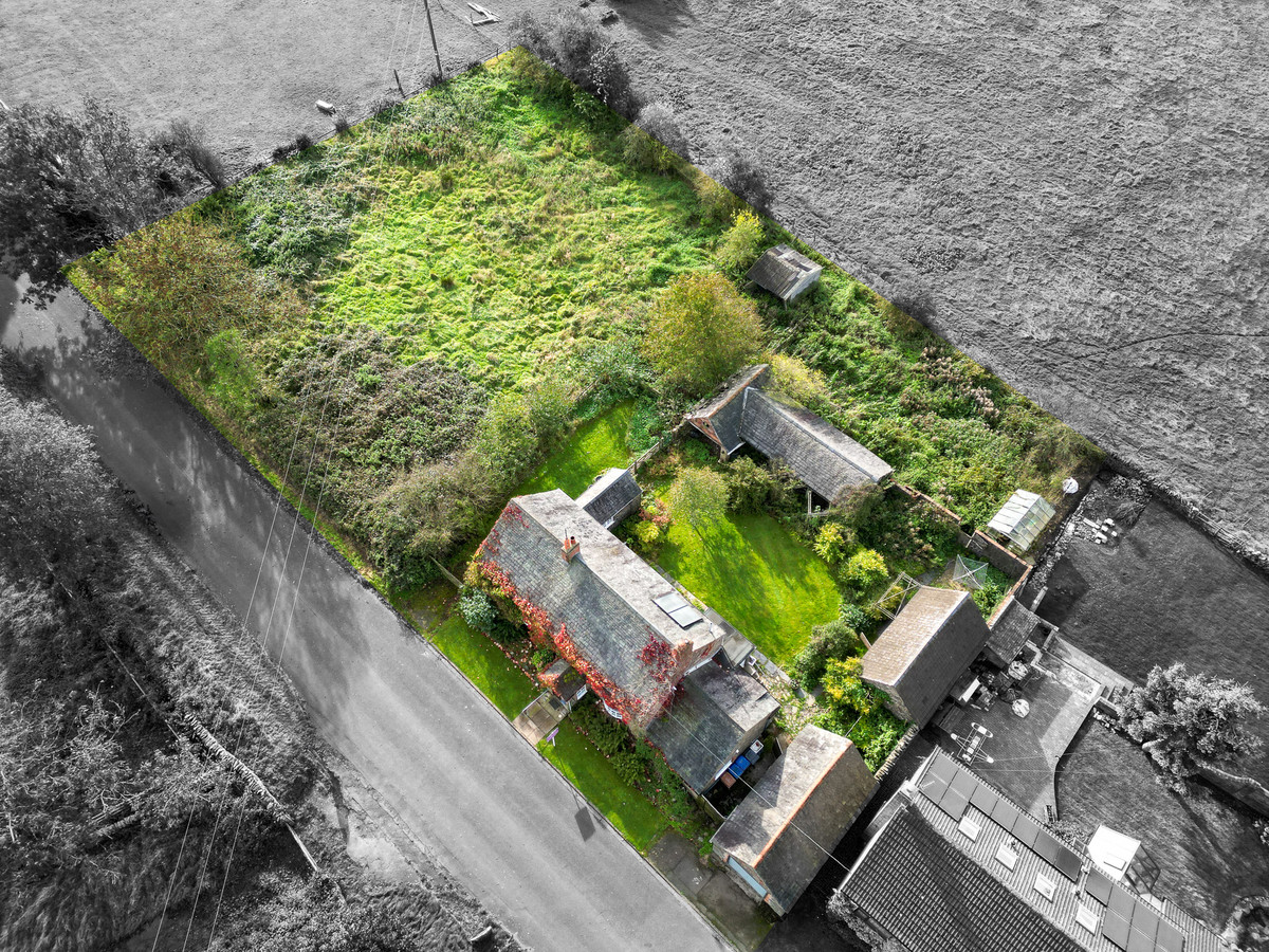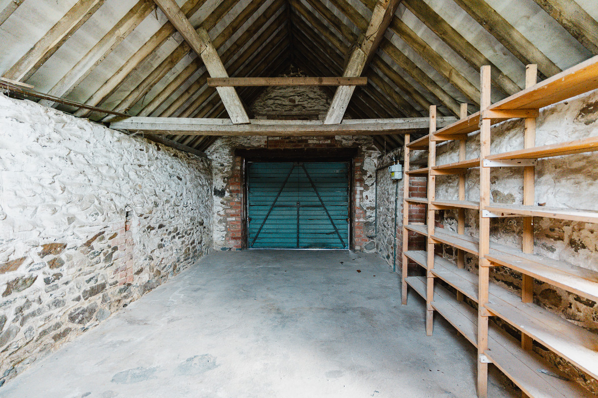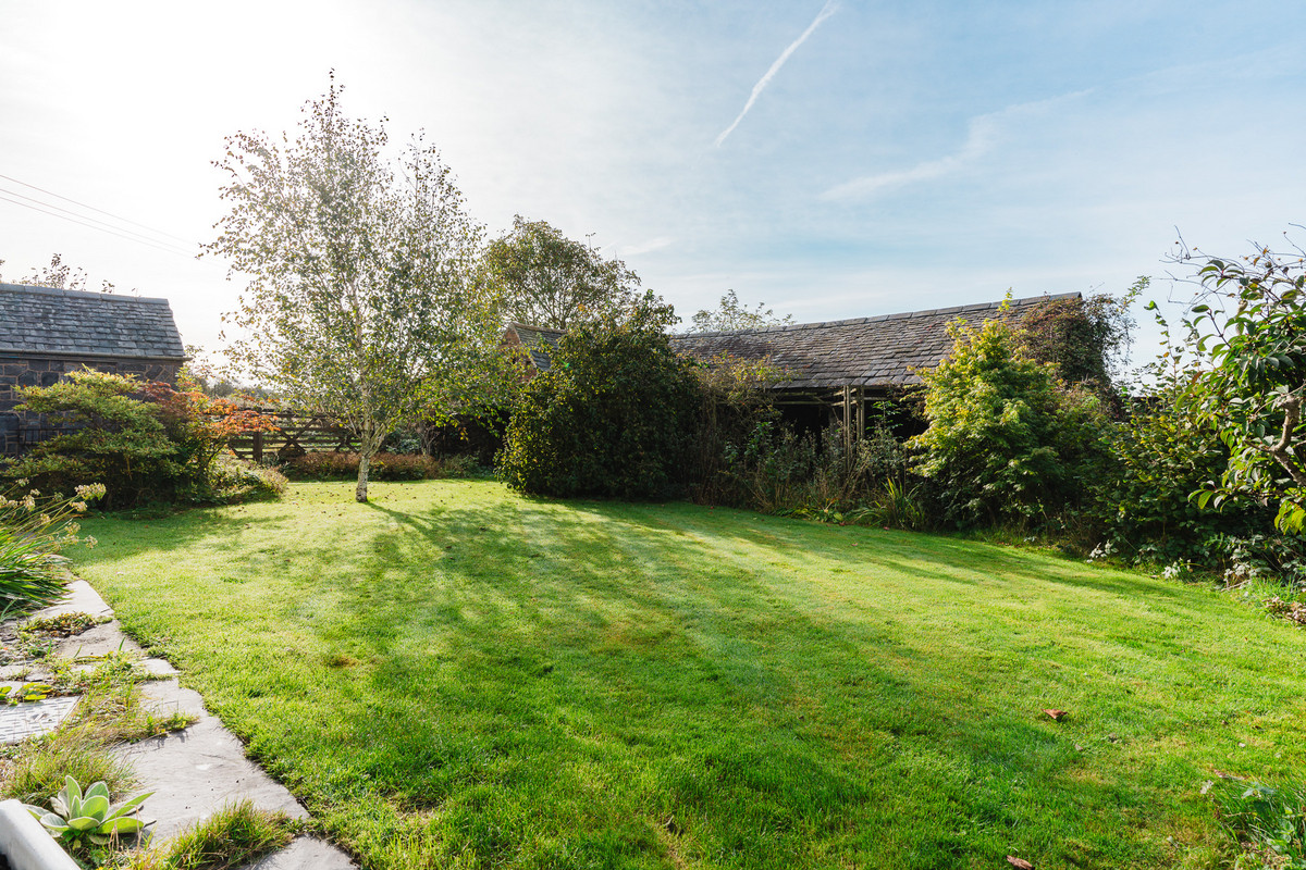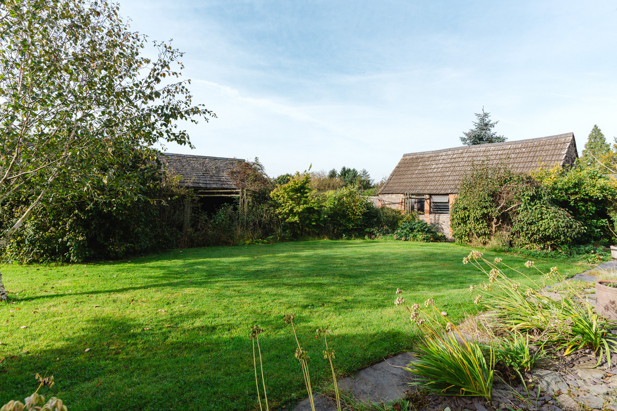 Outside, there is a small lawned frontage with a grass driveway to the side of the property that provides off road parking and allows access to the paddock and garden. To the opposite side of the property lies a stone barn that is currently used as a garage and has an up and over door, a vaulted beamed ceiling and side access. The mature rear garden is lawned with specimen trees and established shrubs. There are two further outbuildings, the smaller of the two being used as a stable with an adjoining feedroom, and a larger open fronted L-shaped barn. The remaining land including the paddock and excluding the main garden amounts to just under half an acre - subject to measuring.