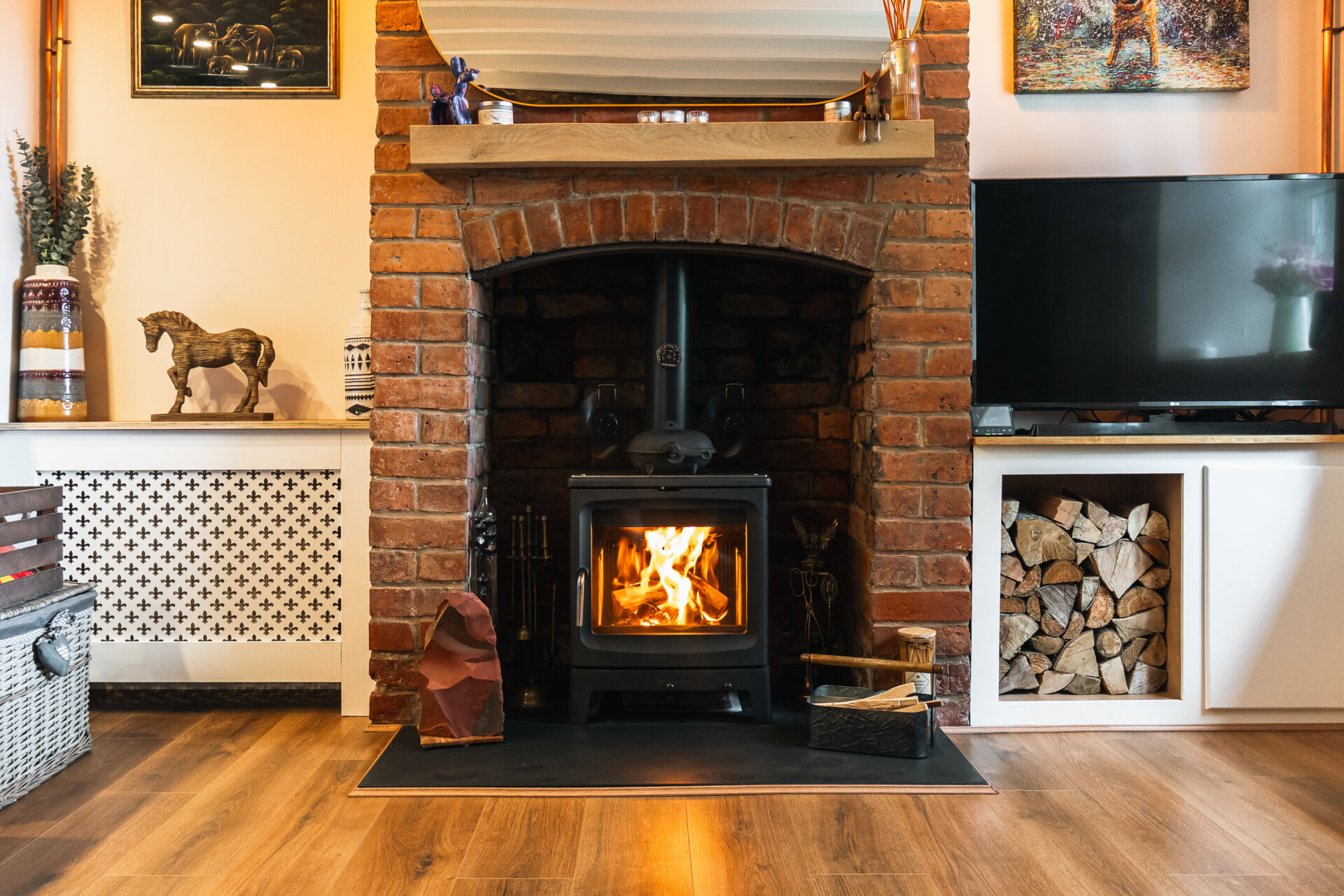 Living Room (3.38m x 4.01m) - This beautifully presented living room blends charm and functionality with a range of characterful and modern features. A composite front door opens into the heart of the home, where a striking brick chimney breast with a traditional oak mantelpiece frames a wood burner complete with a stainless steel cooktop, creating a warm and inviting atmosphere. An original feature stone wall and exposed wood beams add to the room’s rustic appeal, while LED downlights provide clean, efficient lighting. Thoughtful details such as a tiled window sill, fitted blinds, and oak-style laminate flooring enhance both the comfort and practicality of the space. Ideal for cosy nights in or welcoming guests, this living room is full of charm and character.