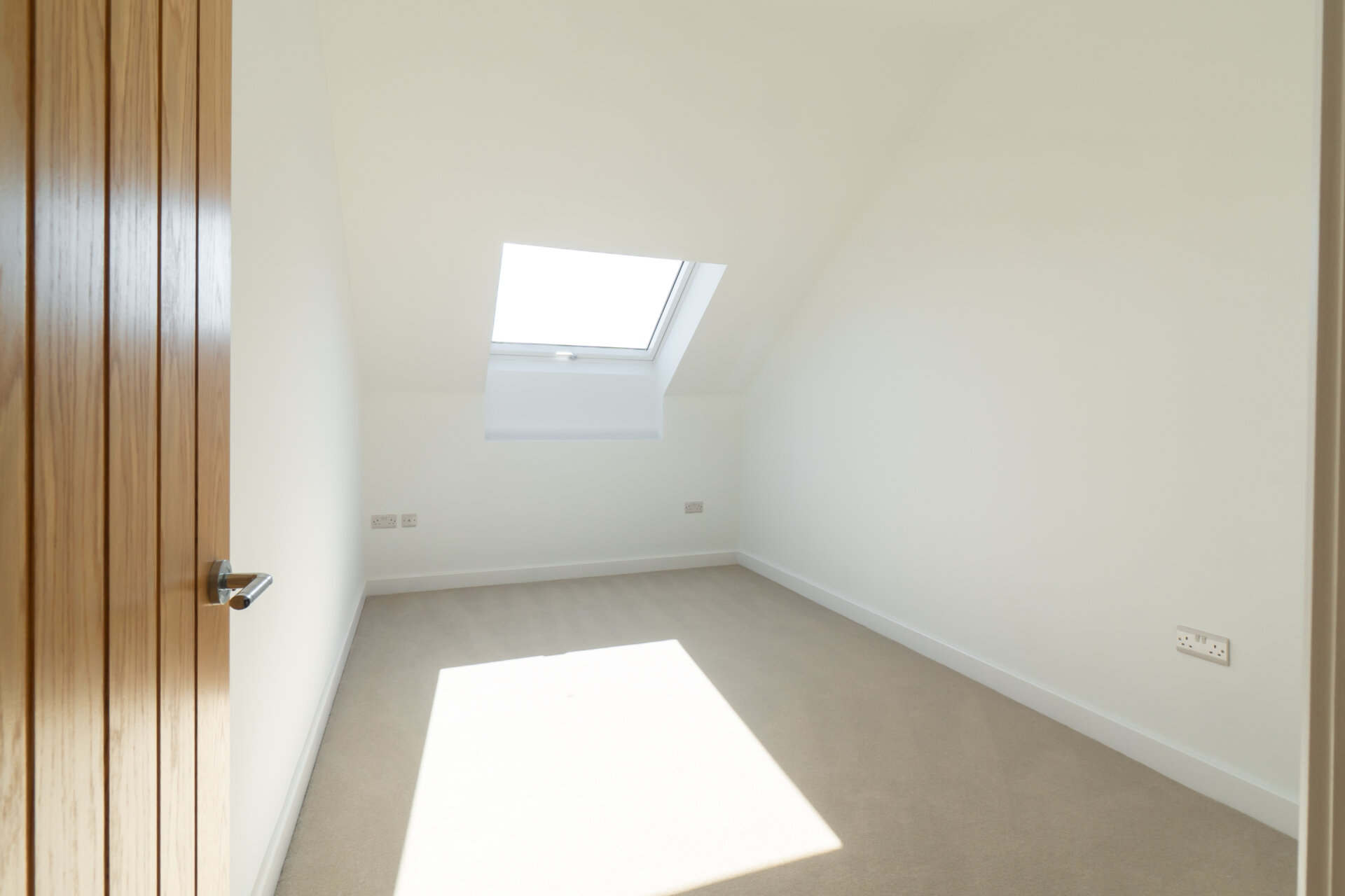 Upstairs, the second floor hosts three bedrooms, including a luxurious master suite to the rear with a stylish en-suite shower room. At the front, two additional double bedrooms benefit from vaulted ceilings and large opening roof windows that bathe the rooms in natural light. A contemporary family bathroom completes the upper level.