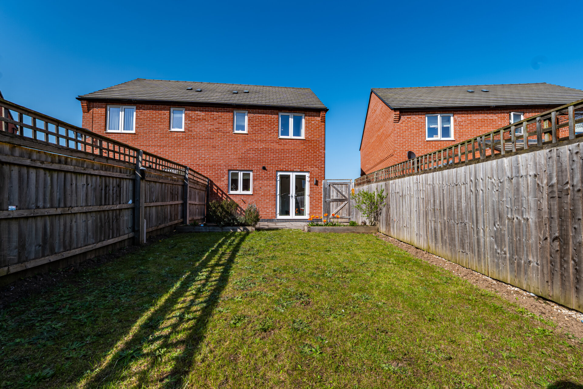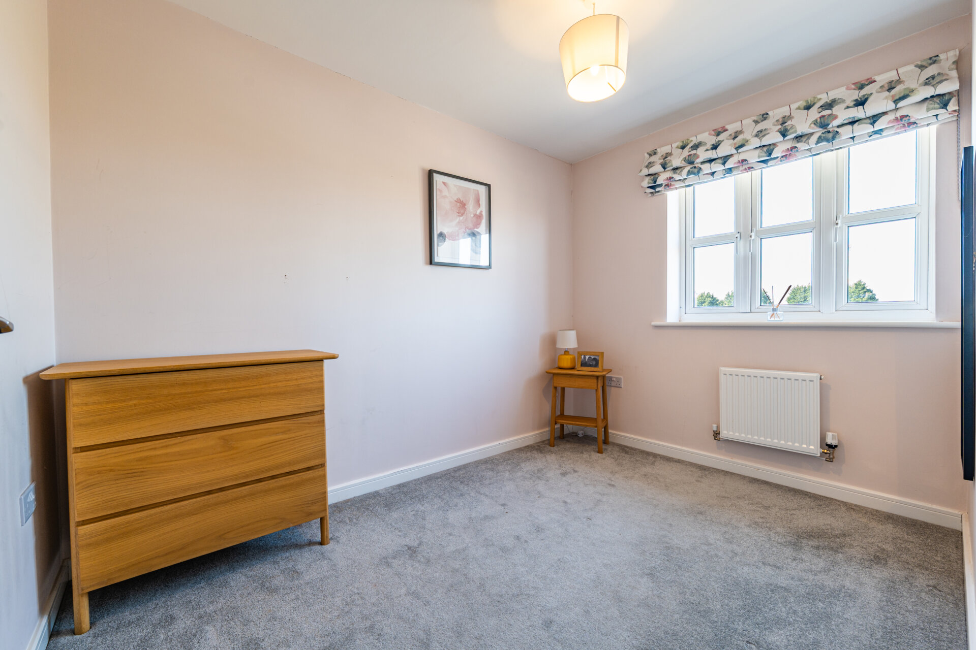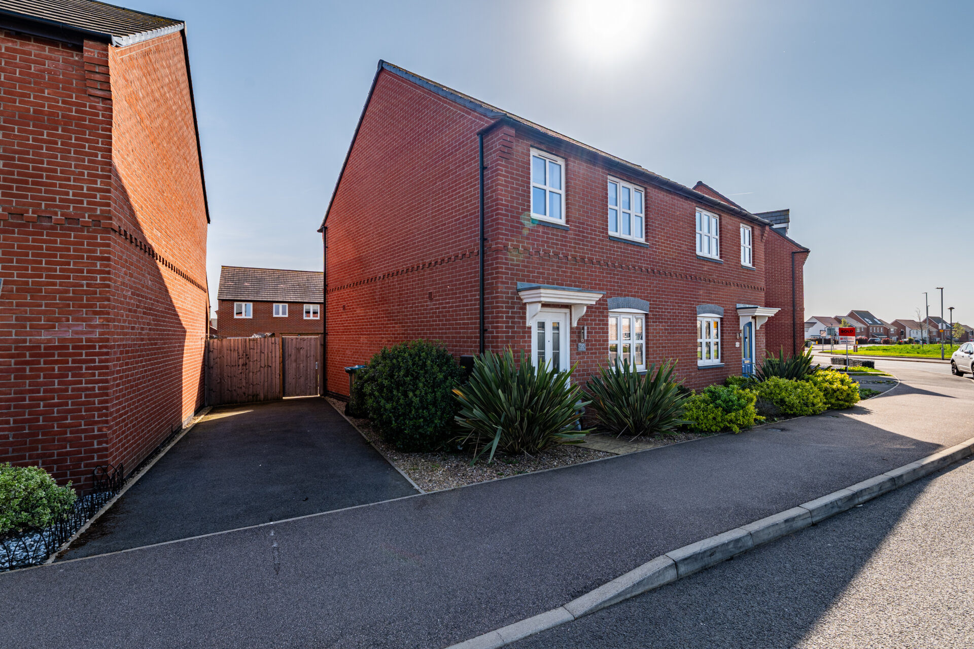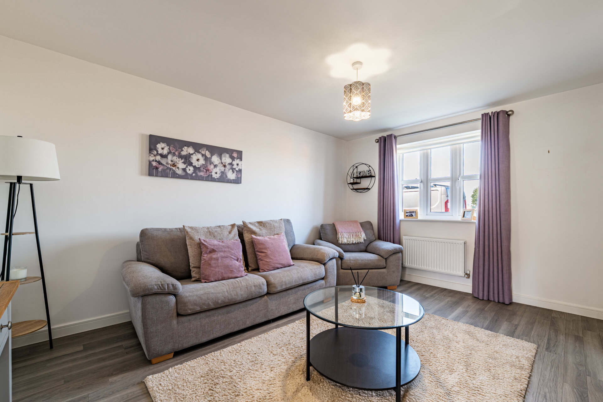Constructed in 2019, the house has been enhanced with a series of considered upgrades, including Amtico flooring across the ground floor and fitted blackout blinds and curtains throughout, reinforcing its cohesive and move-in-ready quality. A driveway runs alongside the house, providing off-street parking for upto two vehicles.