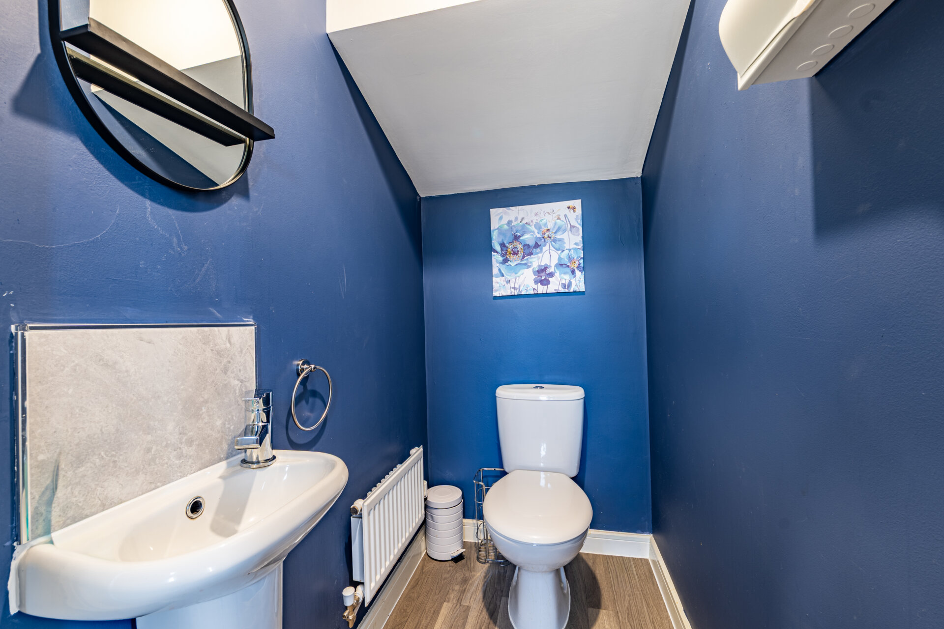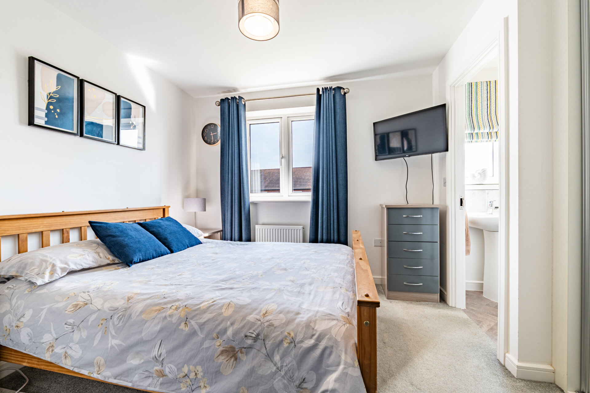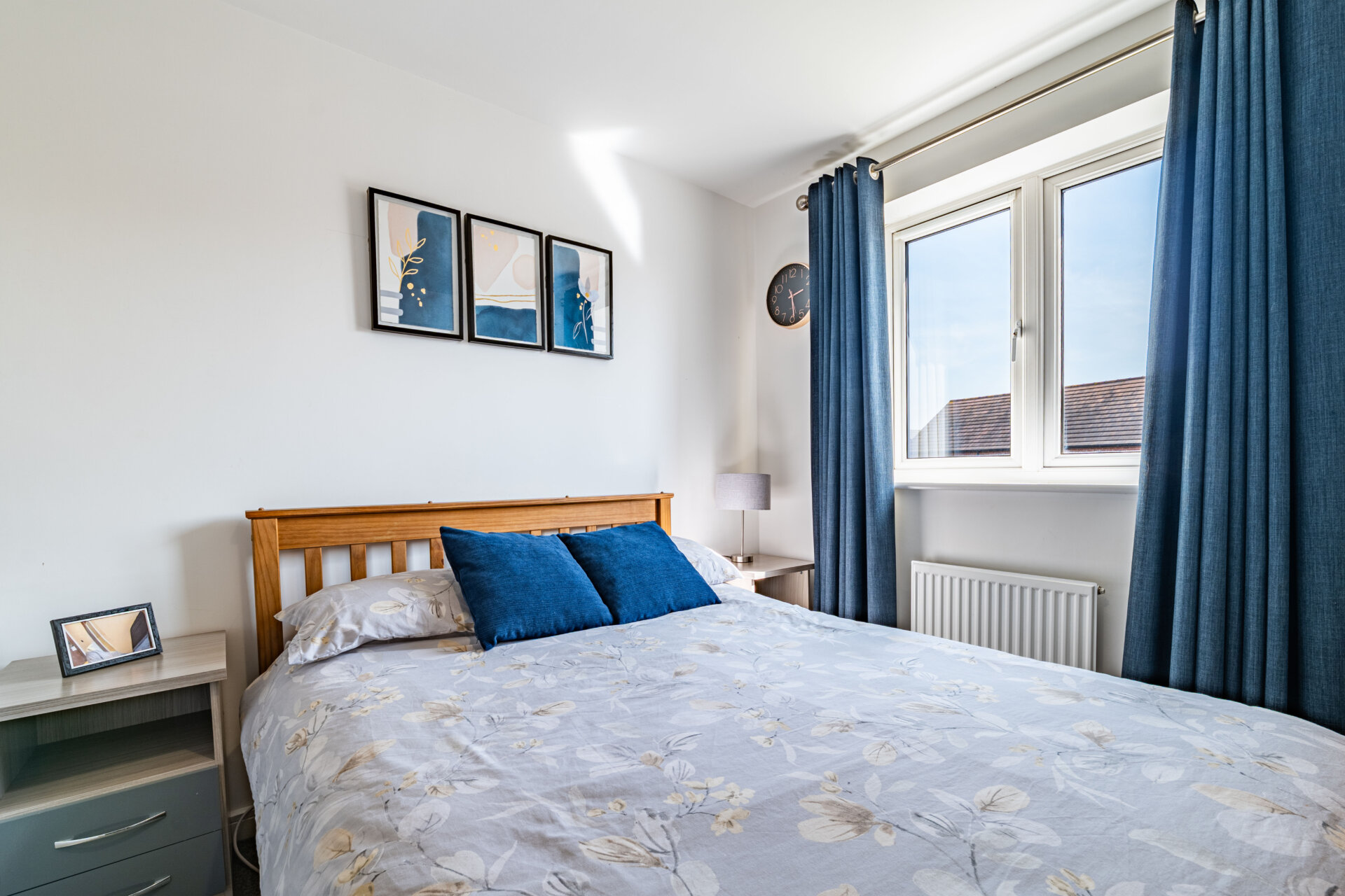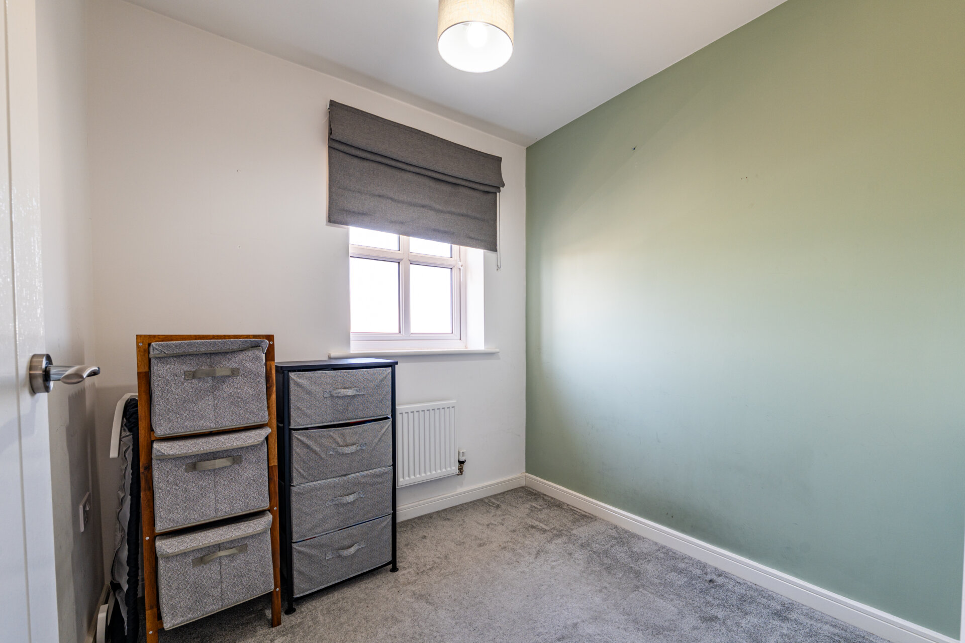 Constructed in 2019, the house has been enhanced with a series of considered upgrades, including Amtico flooring across the ground floor and fitted blackout blinds and curtains throughout, reinforcing its cohesive and move-in-ready quality. A driveway runs alongside the house, providing off-street parking for upto two vehicles.