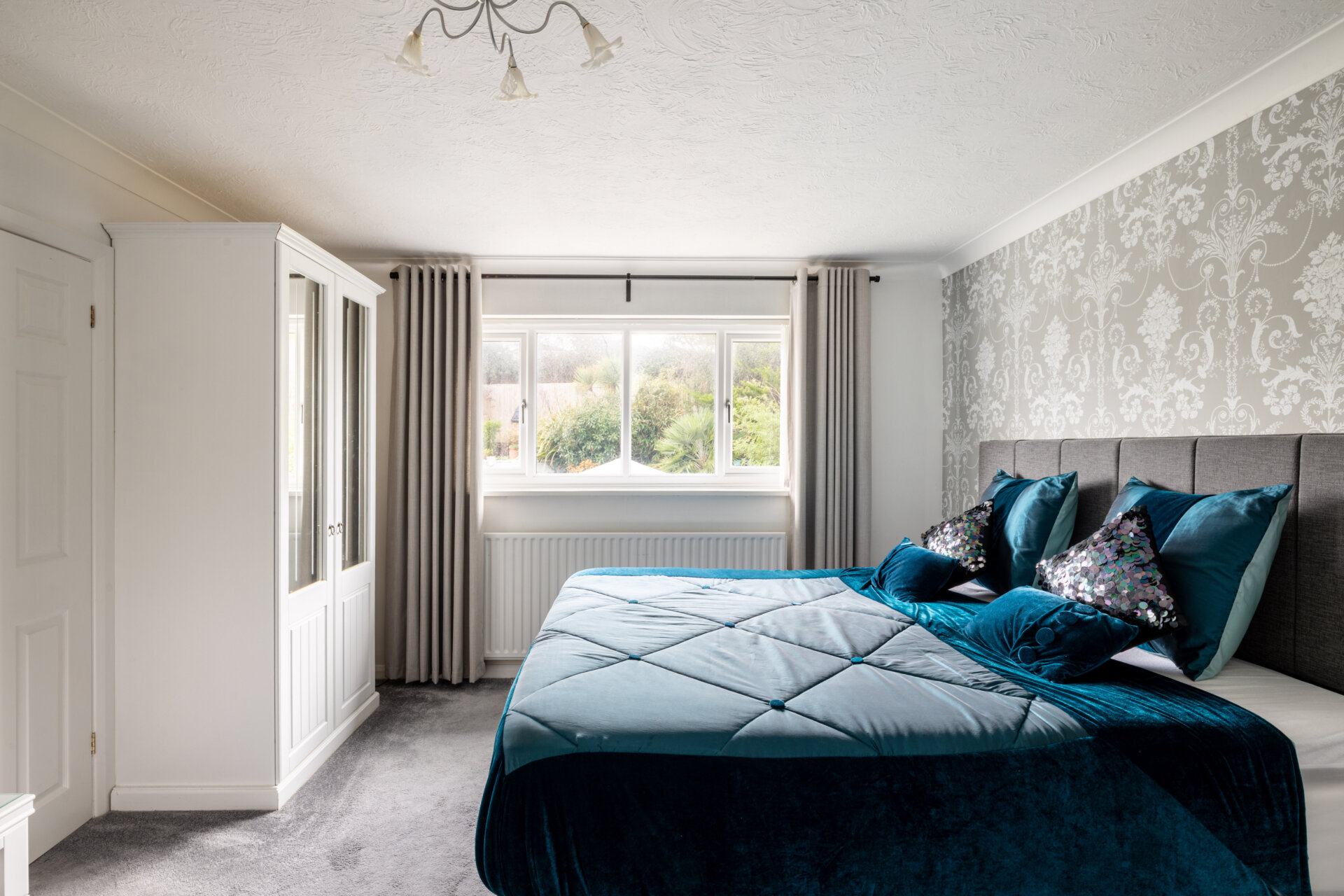 The master bedroom is spacious and filled with natural light, with lovely views over the garden. It features built-in wardrobes and its own private ensuite, creating a peaceful retreat at the end of the day.
