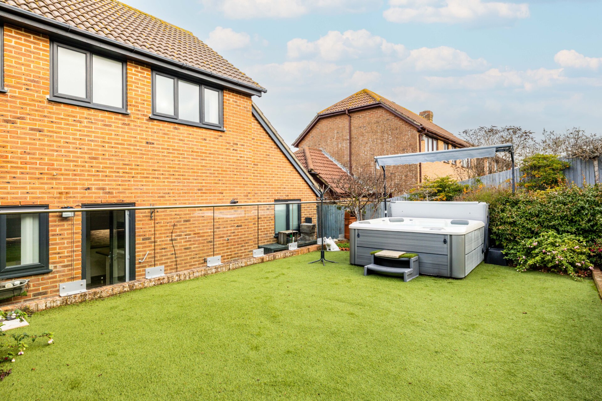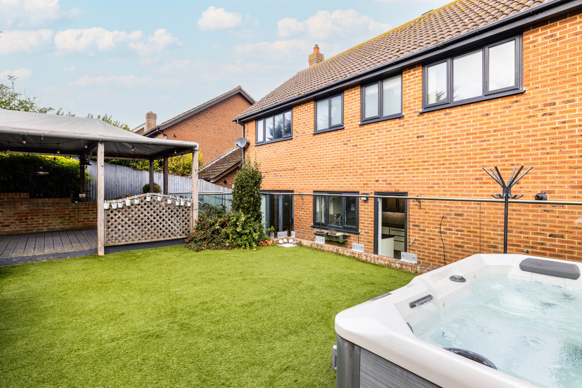 Spacious 4-bed family home with 30ft lounge, modern kitchen, converted garage, master ensuite, low maintenance garden, hot tub, decked seating, driveway, and storage. A must-see!