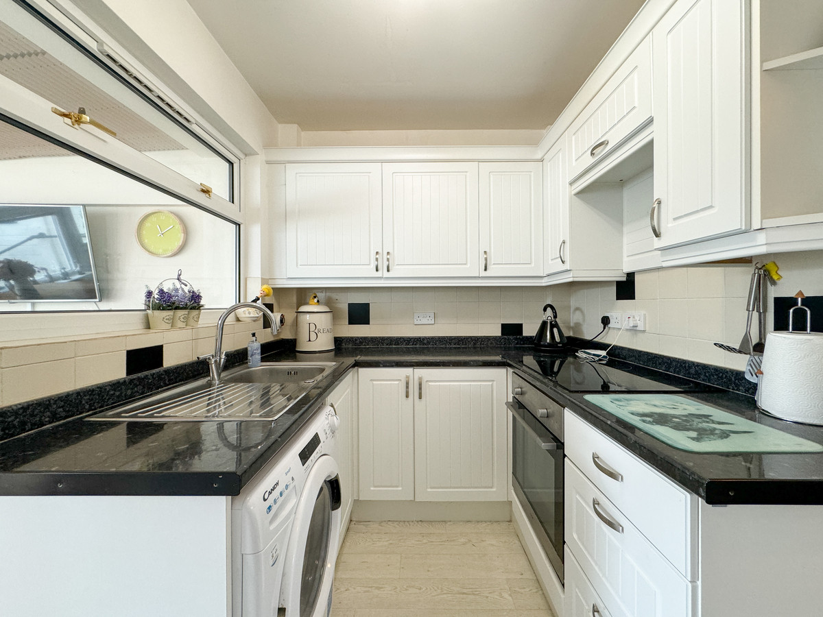 The kitchen hosts a range of matching units to base & eye levels, drainer sink, space for an oven, plumbing for a washing machine and provides access through to the conservatory.