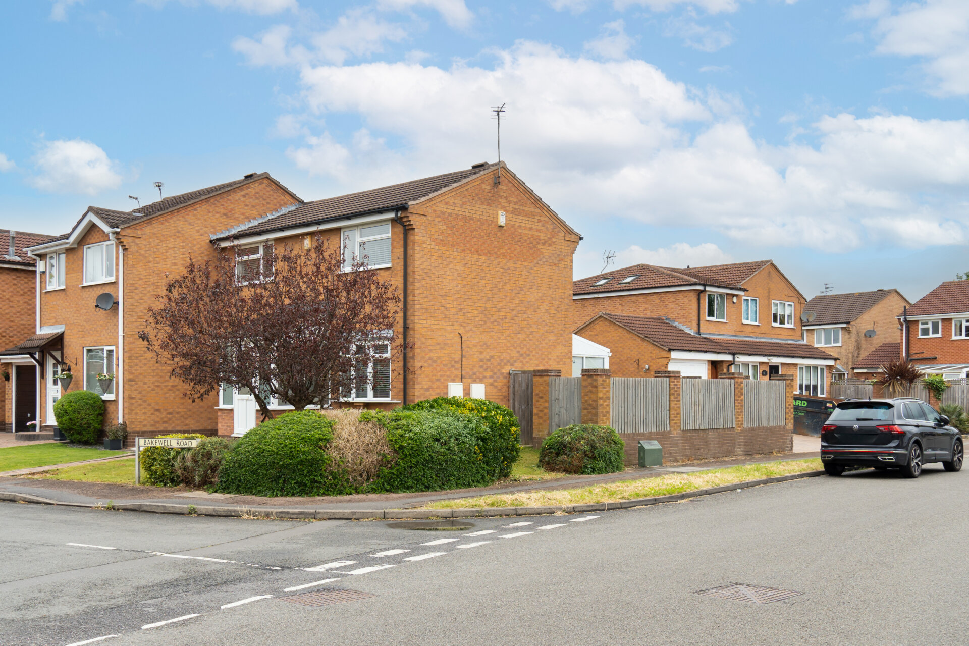 Situated on a corner plot, this home comes complete with a driveway and garage, ensuring ample parking space for residents.