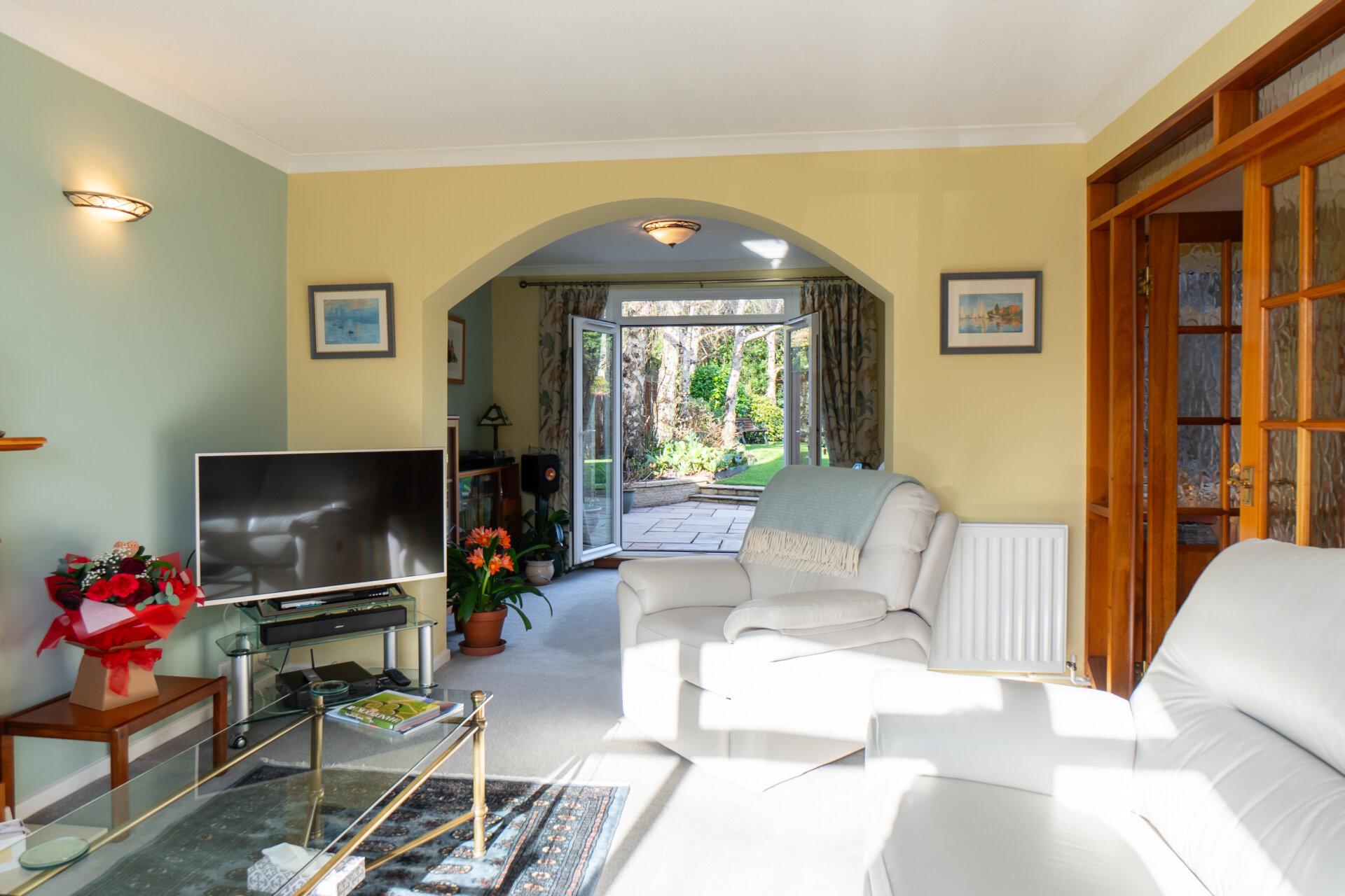 UPVC double glazed window to the front, gas fire with 'Adam" style surround with inset coal effect gas fire standing on a marble hearth with a marble back plate, TV point x3 radiators, UPVC French Doors and windows to the rear, coving to the ceiling and double doors to the study