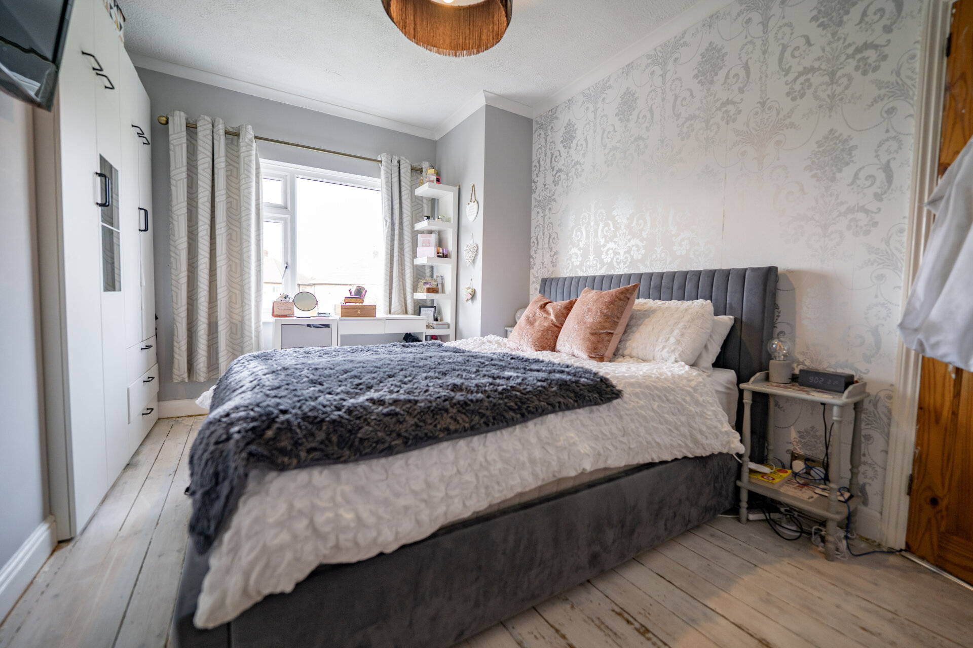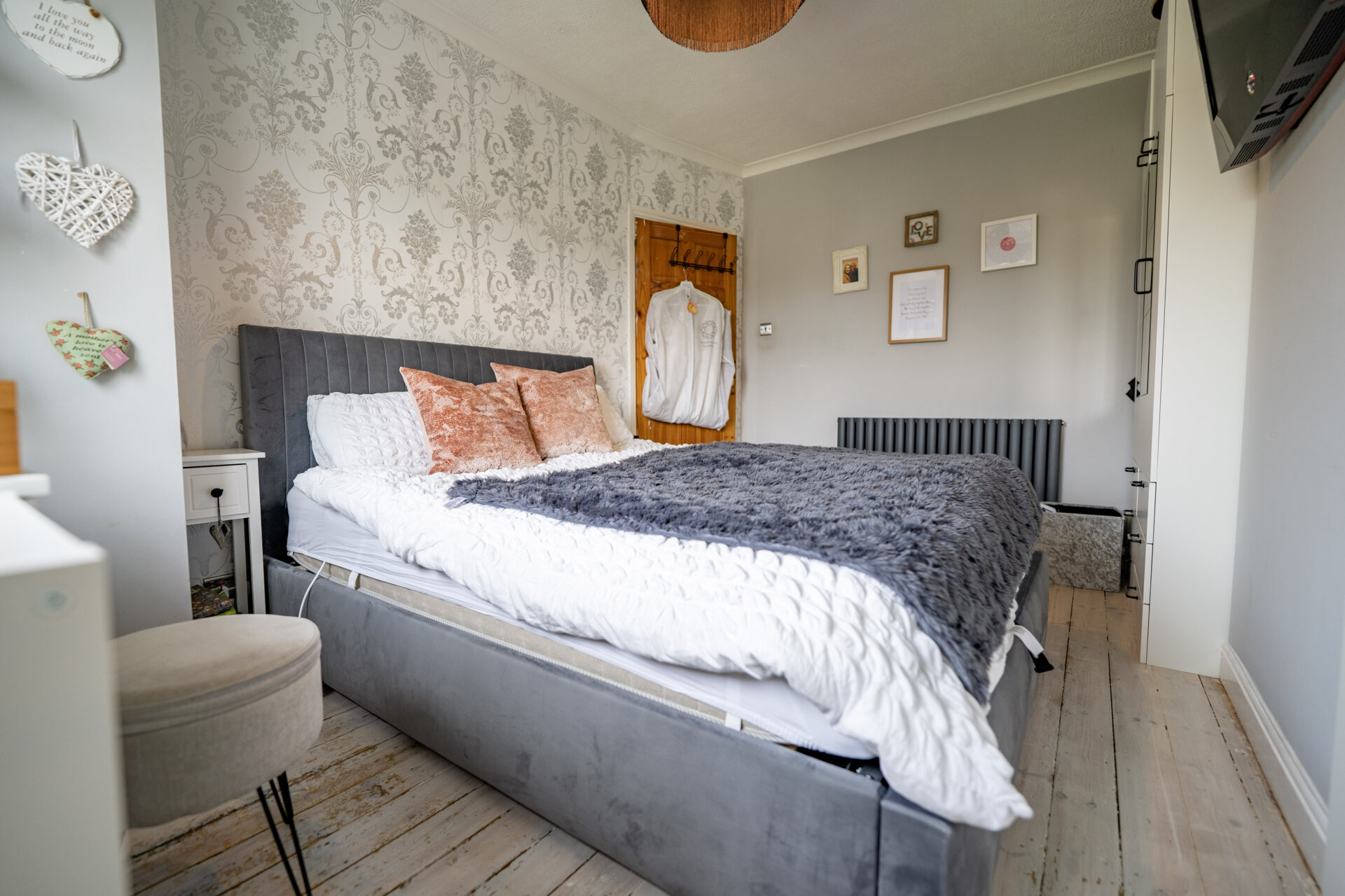 UPVC double glazed window, exposed floor boards, designer radiator and coving to the ceiling.