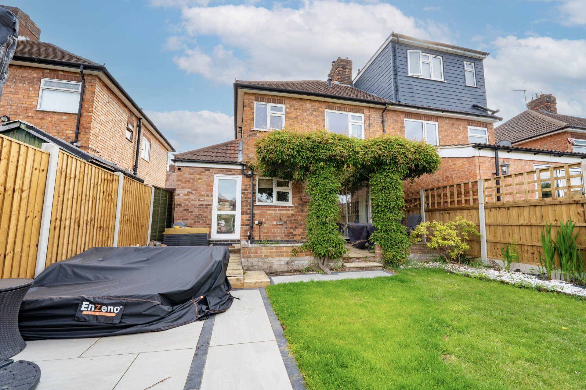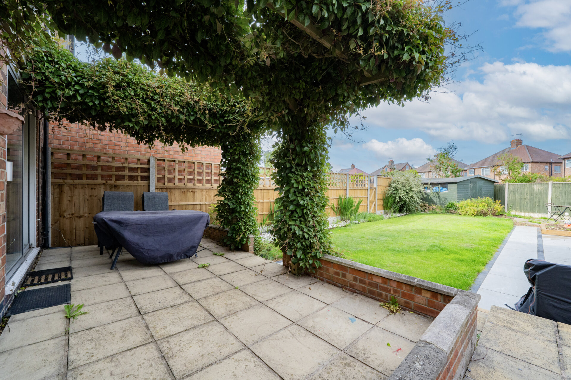 Step outside to discover a delightful outdoor haven, complete with a front driveway providing ample off-road parking. The front area is privately enclosed by a brick wall, offering security and convenience. Towards the rear of the property, a charming patio area awaits, covered by a delightful Pergola - perfect for relaxing or entertaining. Descend the steps to a newly laid Porcelanosa slab area, leading to the rest of the splendid garden. Having a lawn surrounded by gravel borders filled with flourishing shrubs and flowers, this garden provides a serene escape. Additionally, a garden shed at the bottom of the garden provides extra storage space and is equipped with power, adding functionality to this outdoor oasis. This expansive and thoughtfully designed outdoor space offers endless possibilities for outdoor enjoyment and relaxation.