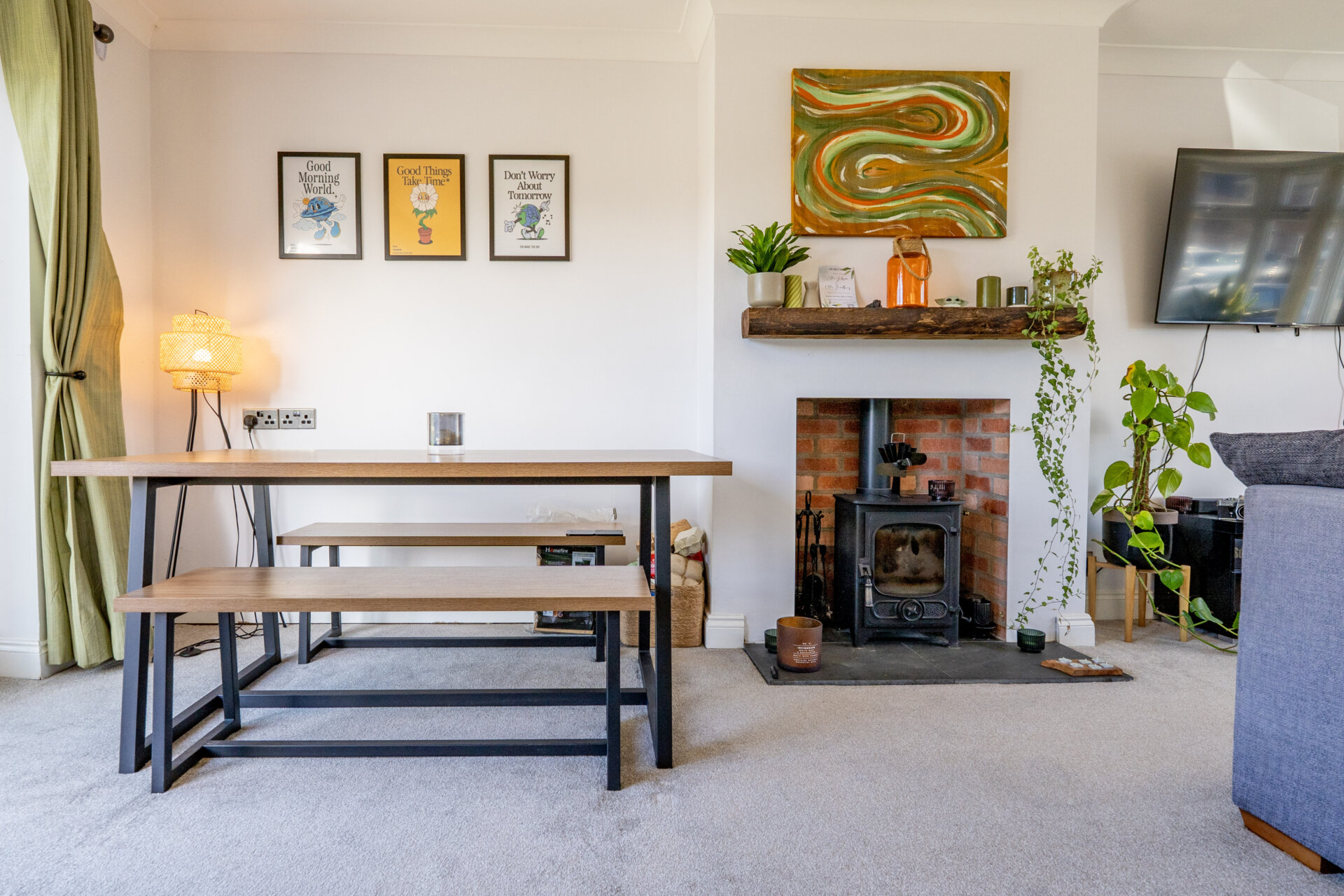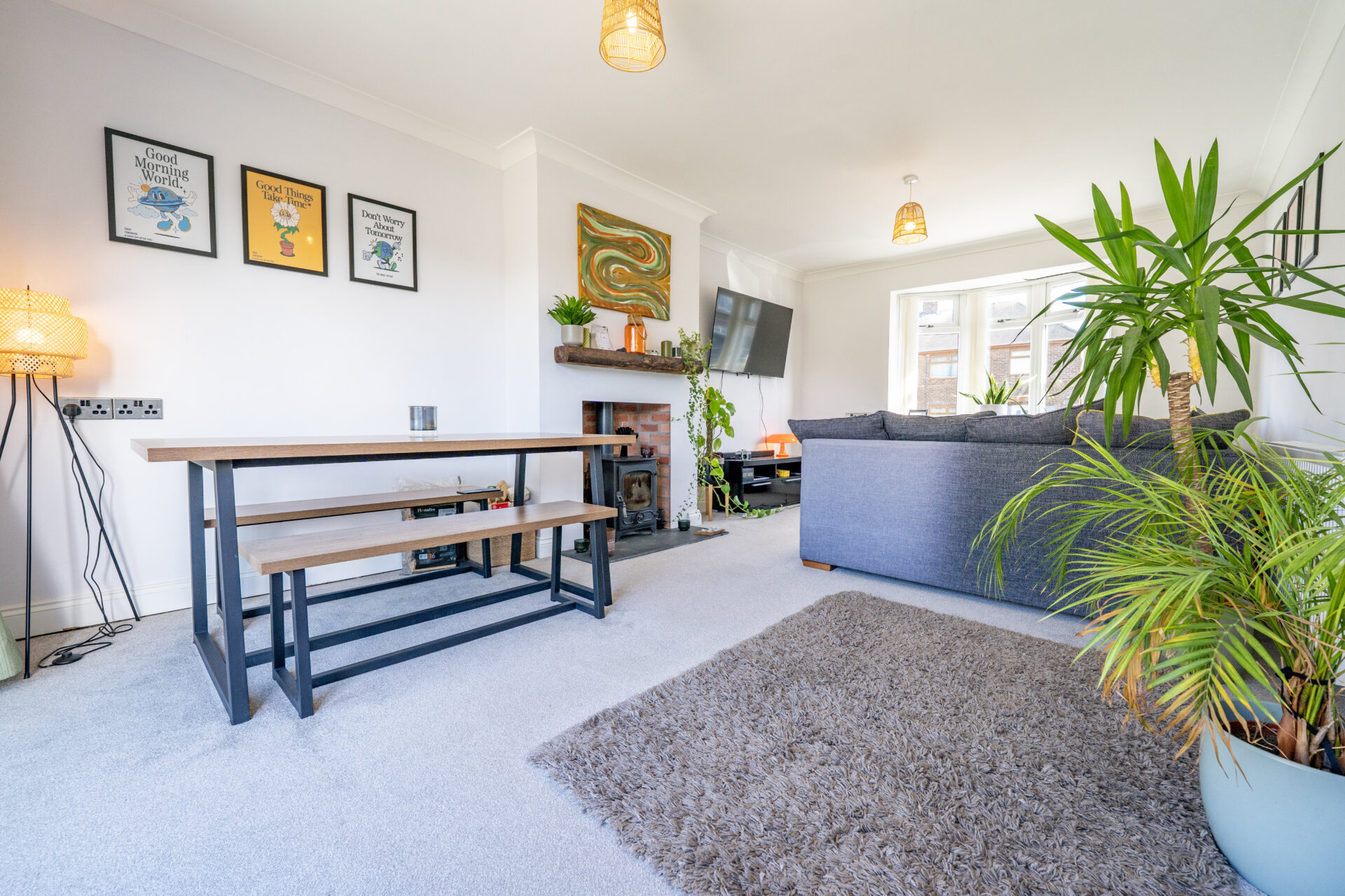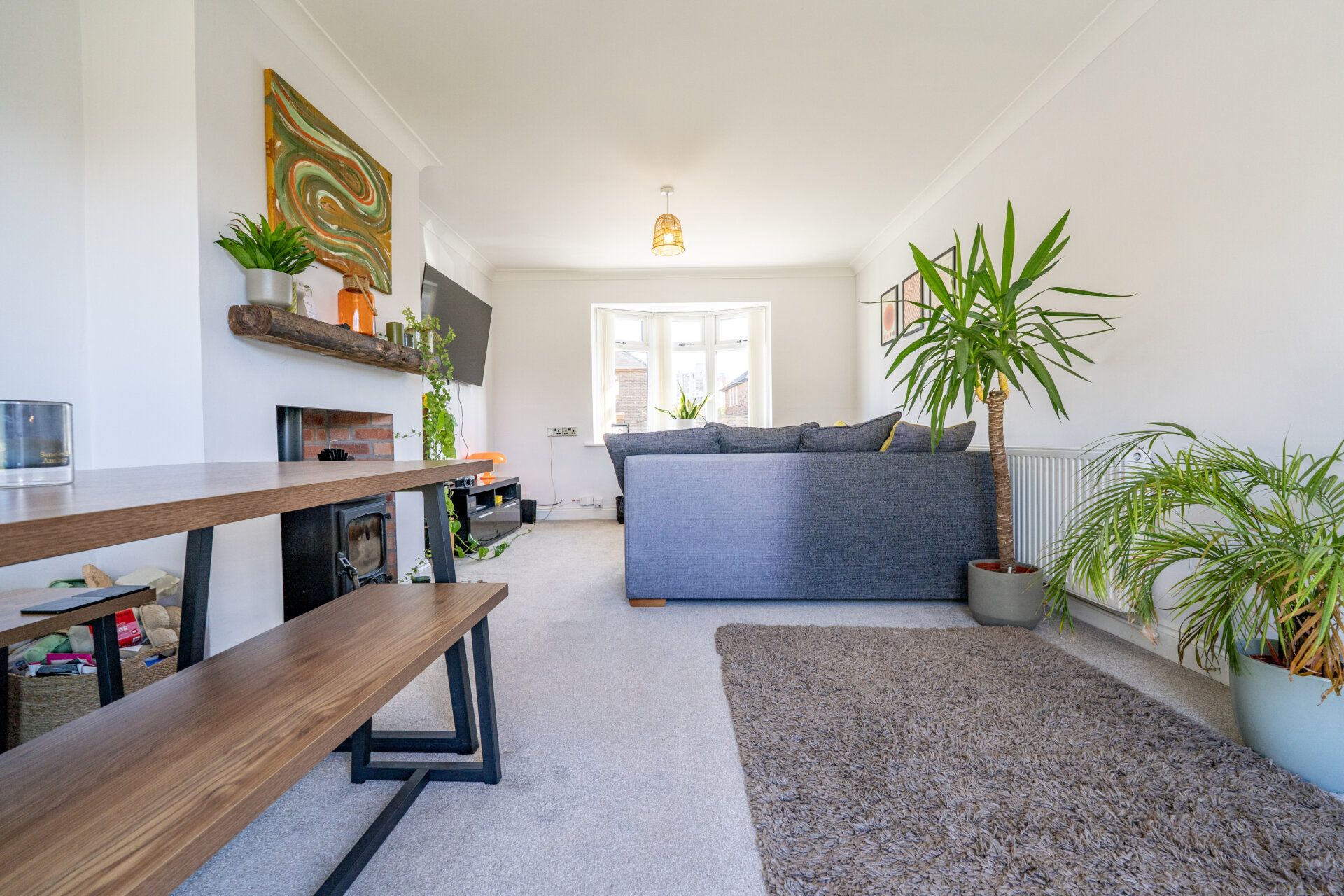Having a dual aspect this light and airy room has a UPVC double glazed bay window to the front, UPVC double glazed sliding doors to the garden, coving to the ceiling, Log Burner on a tiled hearth and radiator.
