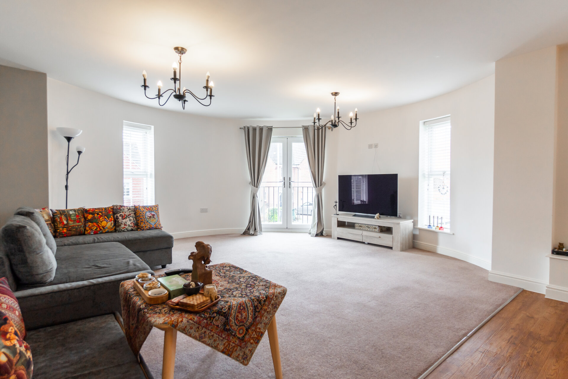 A beautiful light and airy room with a curved wall, x2 UPVC double glazed windows and double glazed Juliet Balcony, power points, TV point, carpet, radiator and open to the