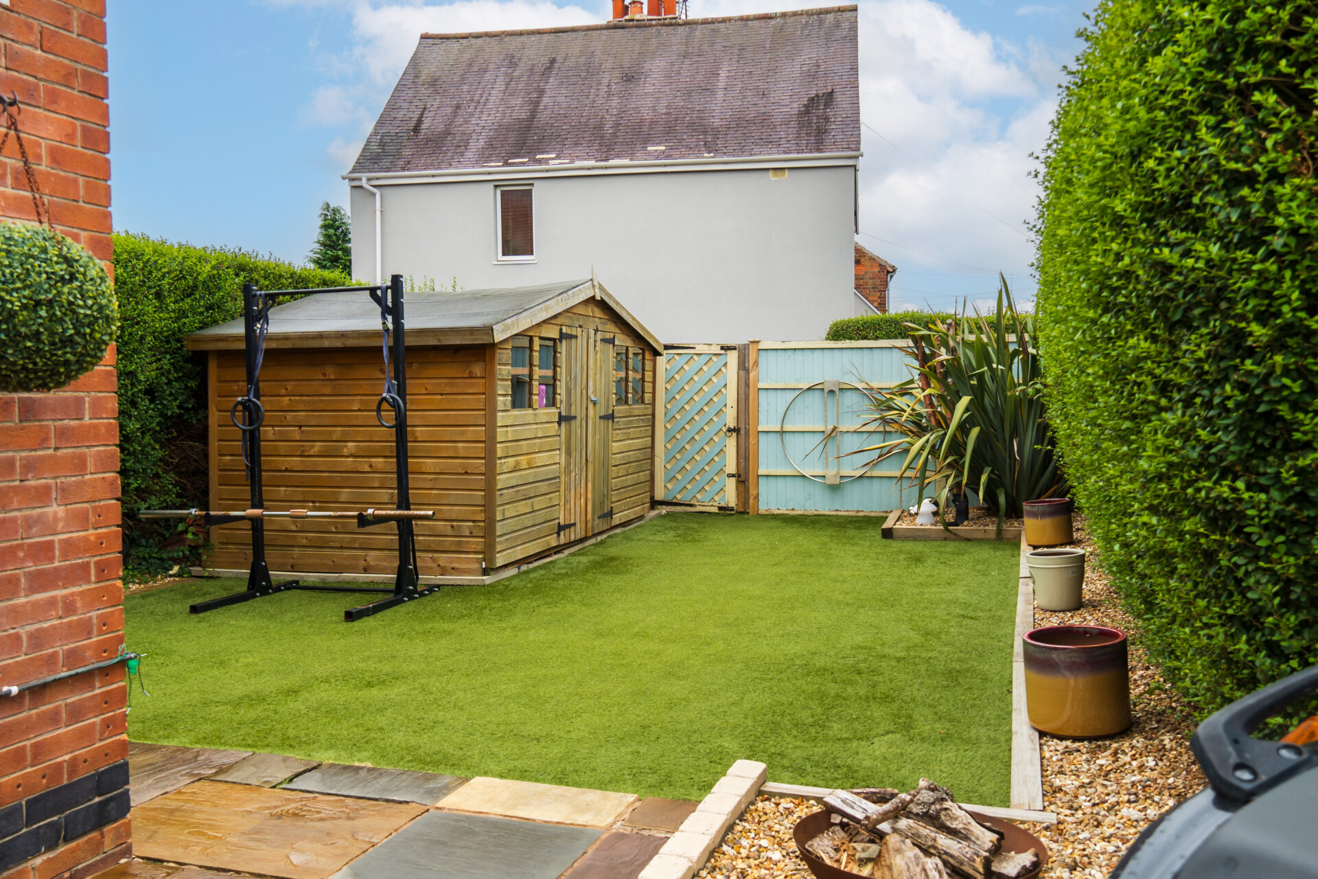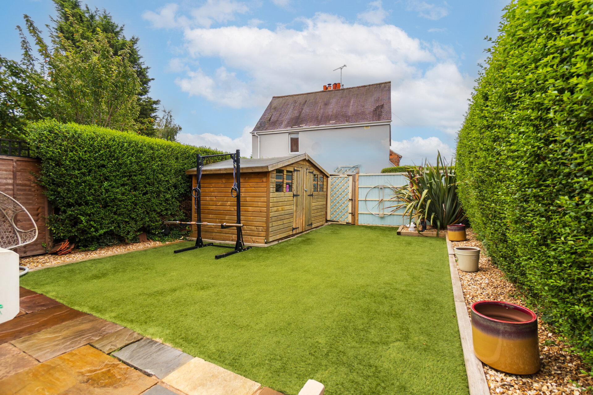 The corner plot allows for gardens on all sides, with the front entrance being discreetly positioned on the side, leading to the private rear garden. Securely enclosed by hedges and fences, the rear garden features a mix of lawn and gravel borders, creating a low-maintenance yet inviting outdoor area. With an outside tap and power sockets, this space is perfect for relaxing or entertaining al fresco. A large shed with power supply offers storage or workshop space, adding functionality to the outdoor area. Additionally, off-road parking accessed through a second gate adds practicality to this charming property. Don't miss the opportunity to make this delightful home yours and enjoy the tranquillity and convenience it offers.