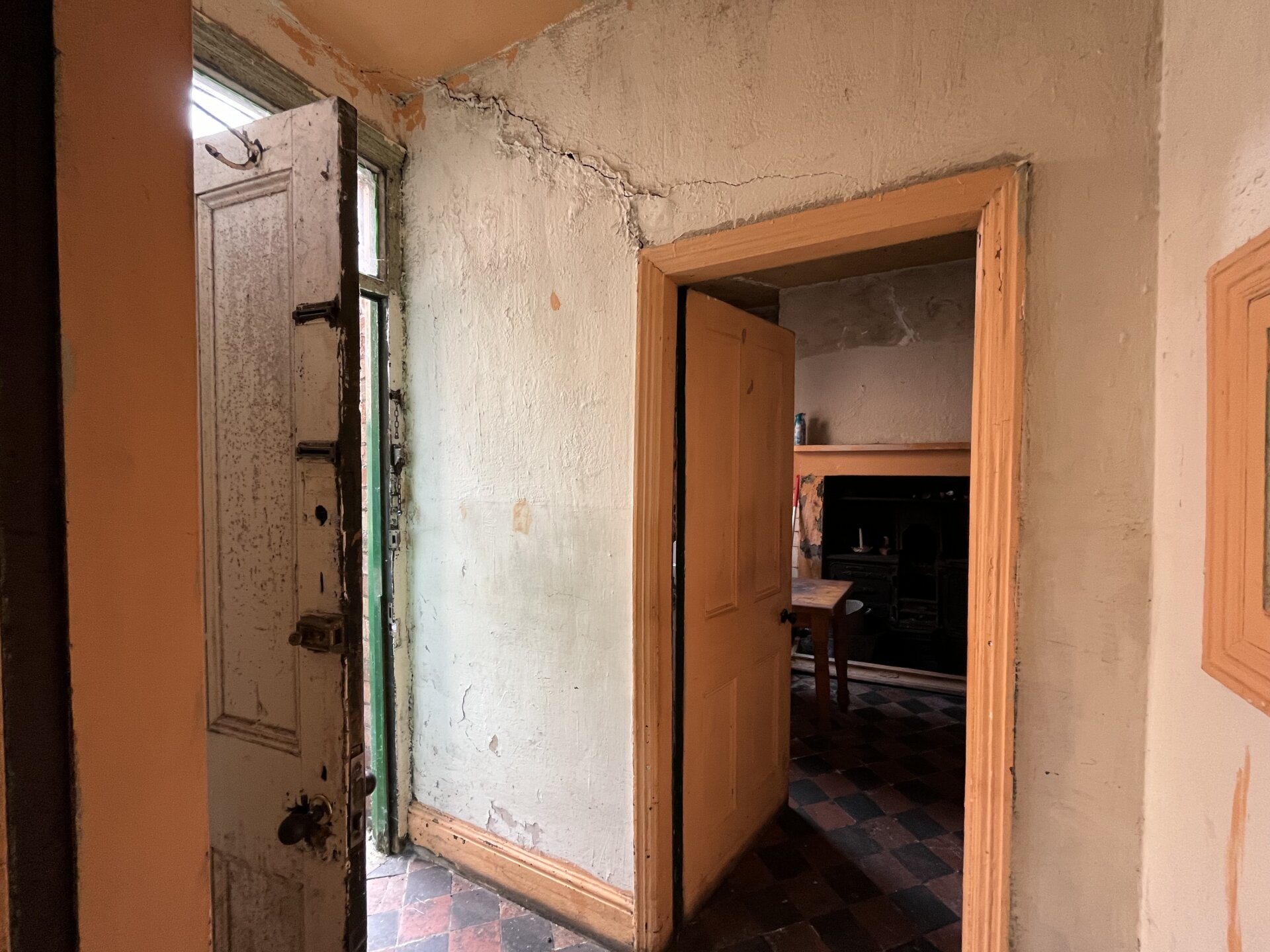 Front entrance door, stairs to the first floor landing and doors to