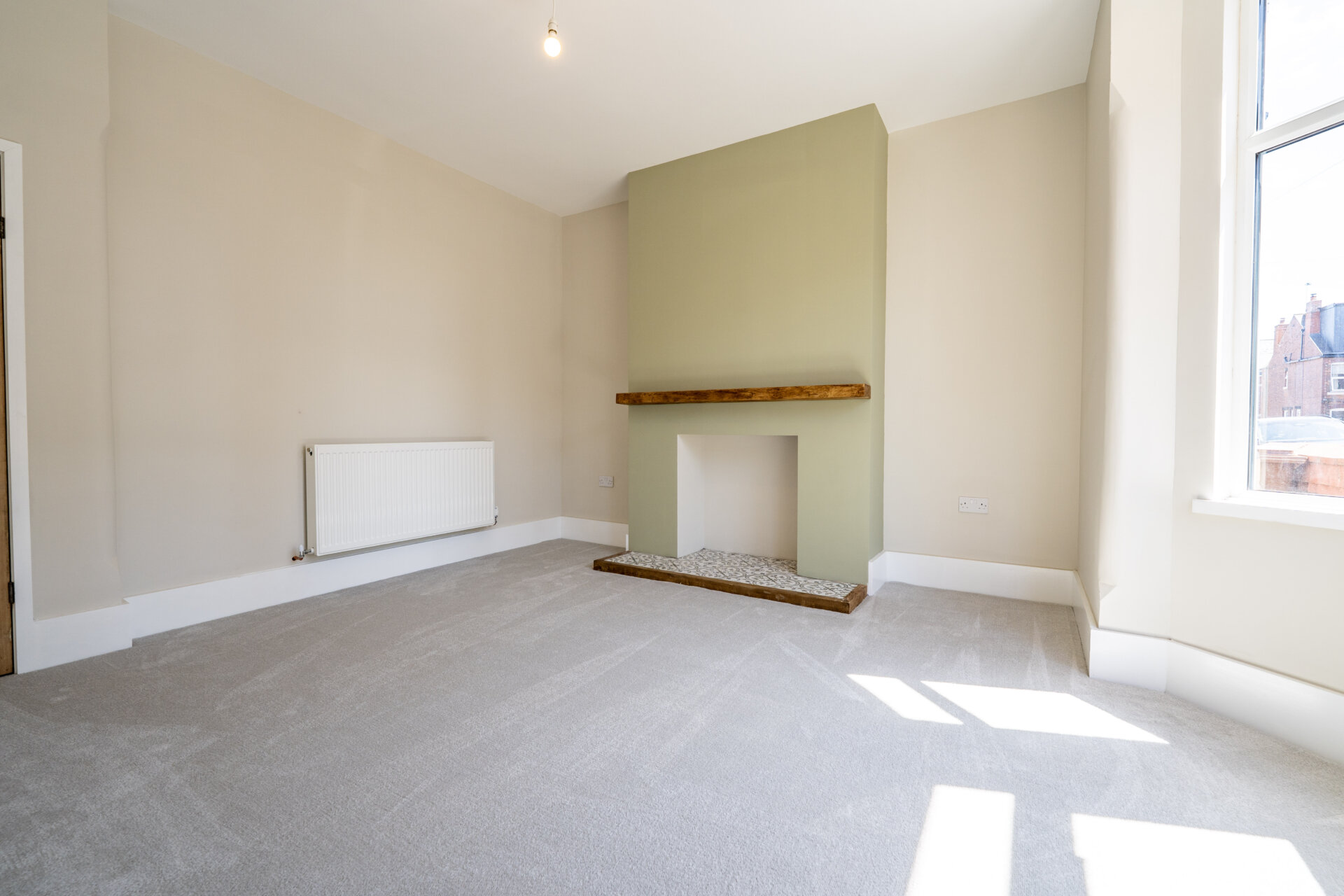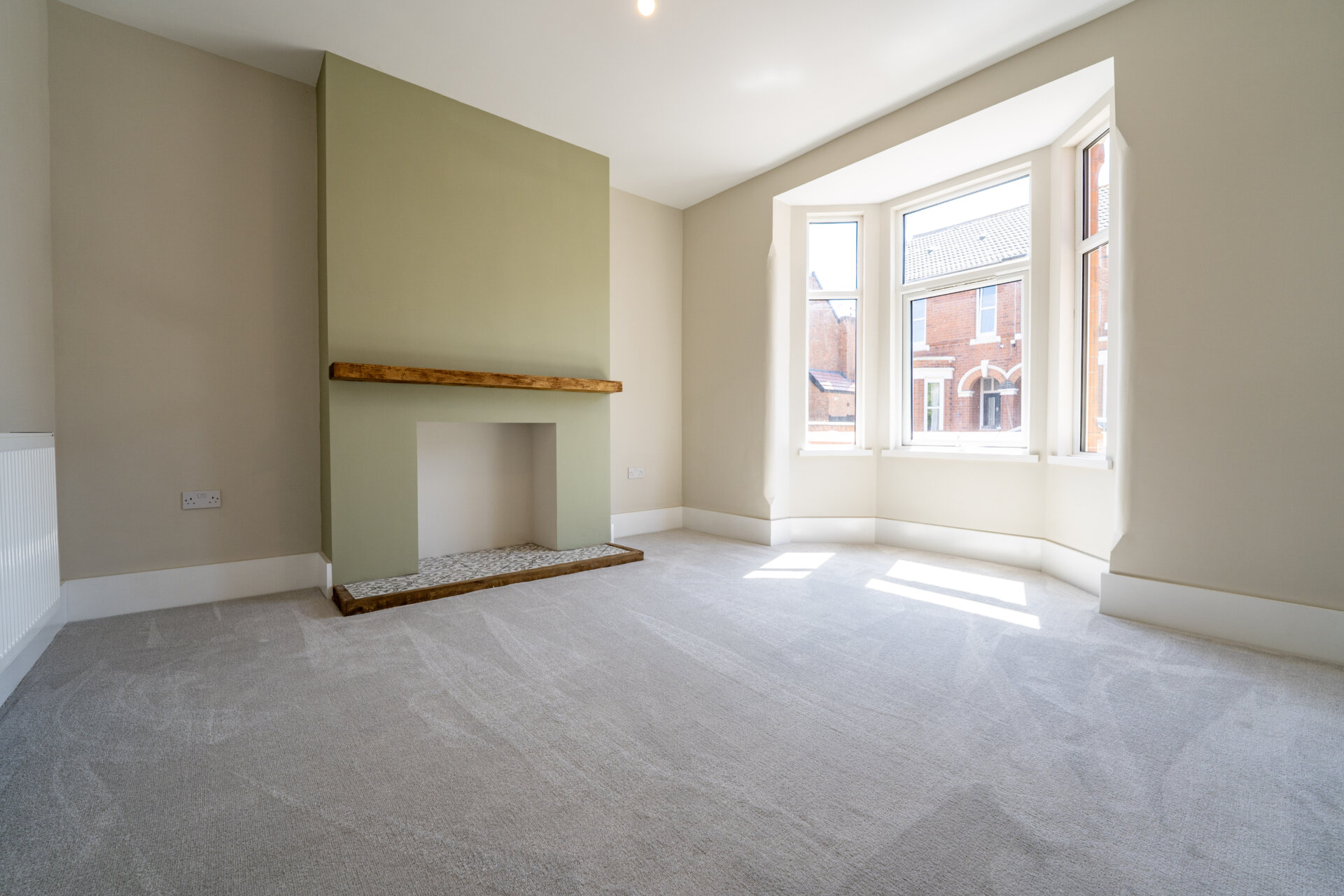 UPVC double glazed bay window to the front, feature fireplace, radiator.