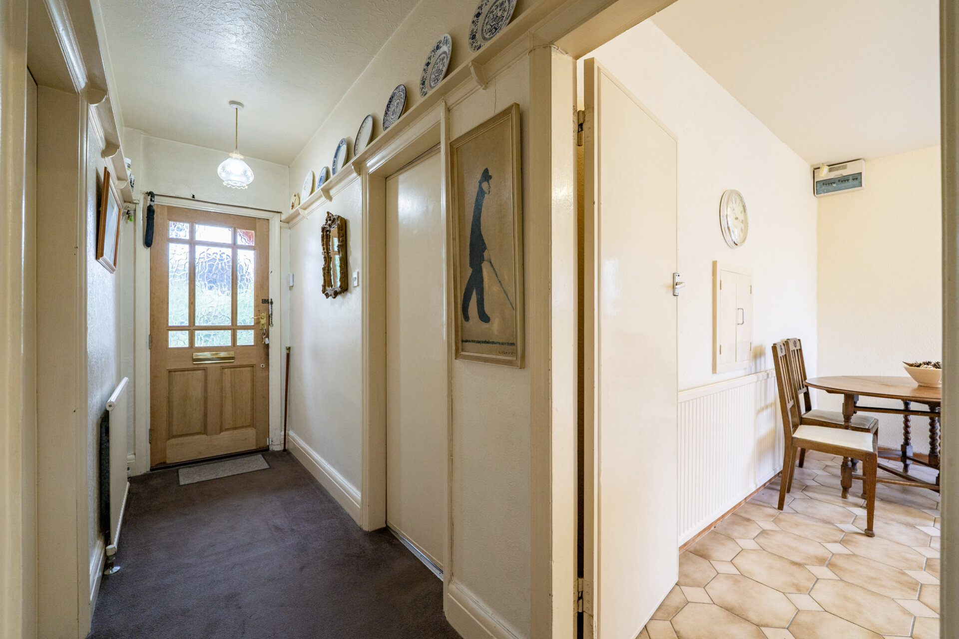 Front entrance door, access to the loft and doors to