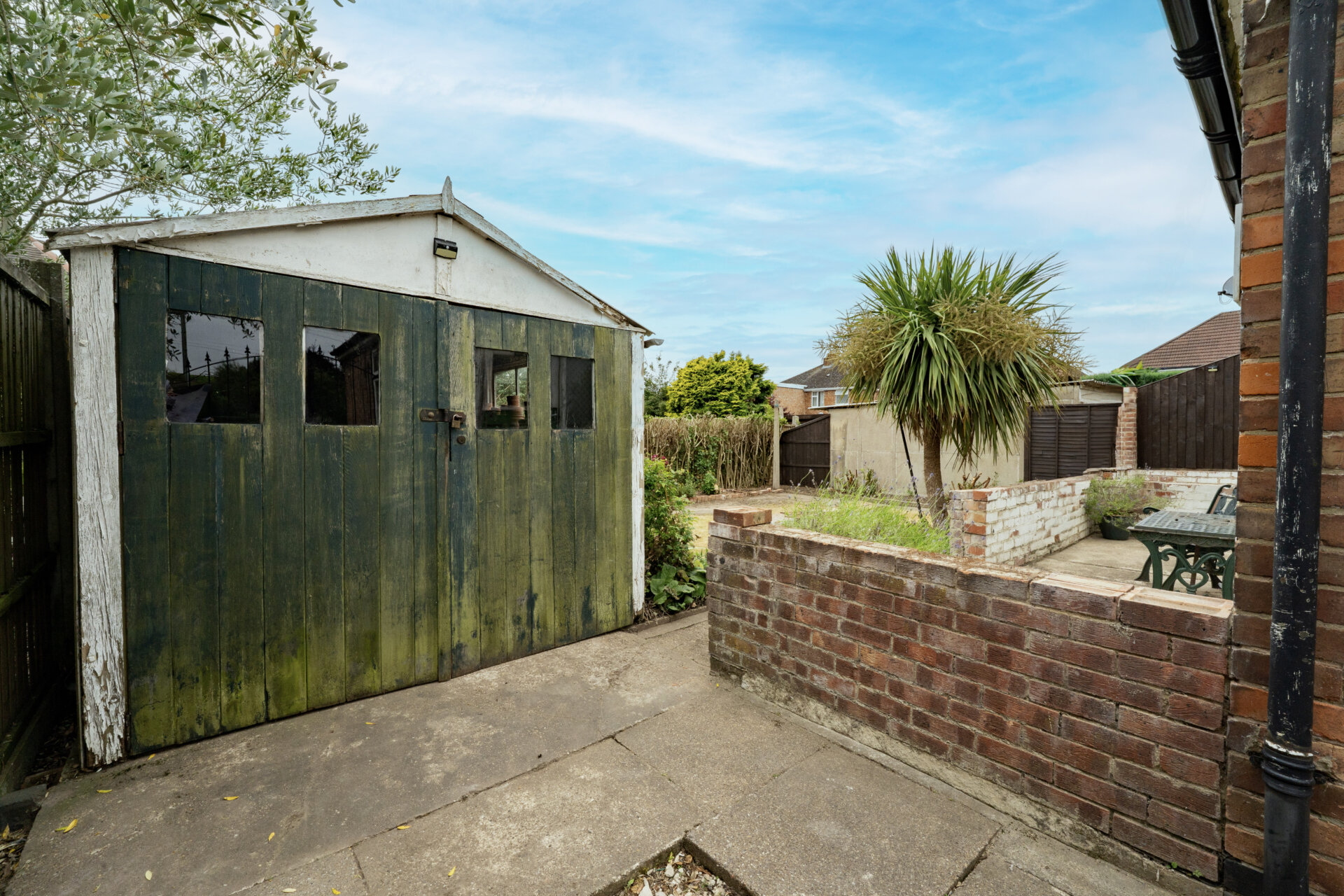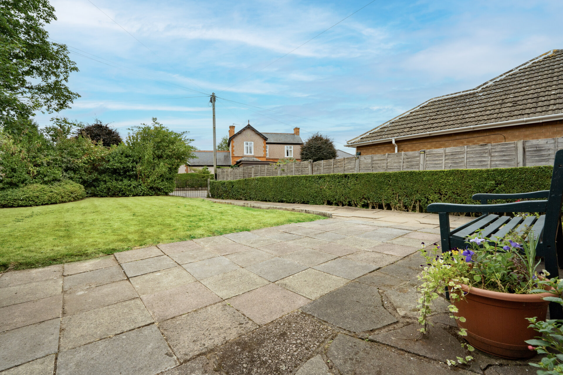 There is a larger than average front garden which sets the bungalow back from the road, providing privacy. Surrounded by shrubs and trees, the front garden creates a natural barrier, enhancing the peaceful atmosphere. A sizeable driveway accommodates at least 5/6 vehicles, ensuring ample parking space for residents and guests. This driveway extends down the side elevation to a garage, offering convenience and secure storage. To the rear is a patio immediate to the property which leads to a lawn, and borders filled with vibrant shrubs create a picturesque setting for outdoor gatherings and relaxation.