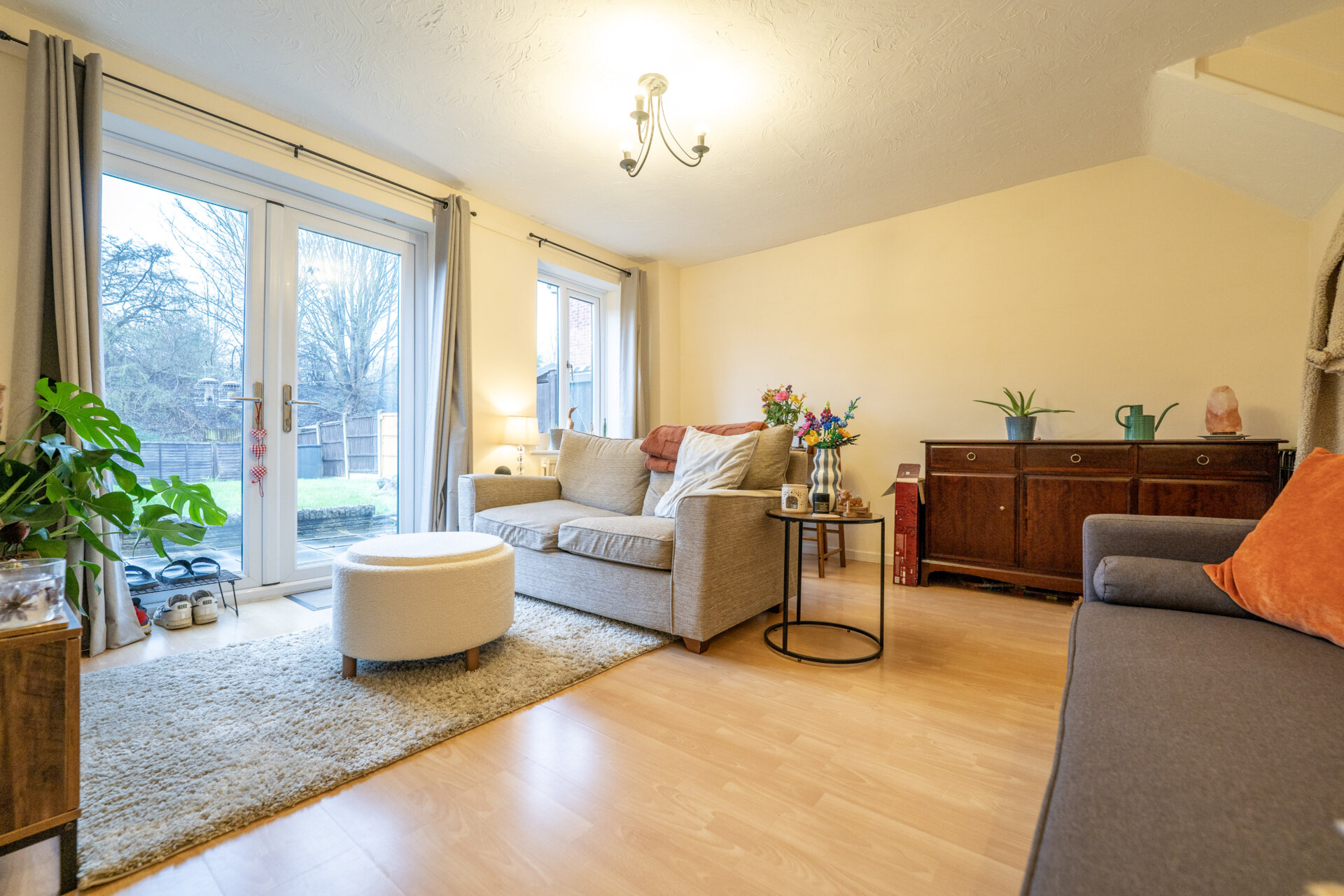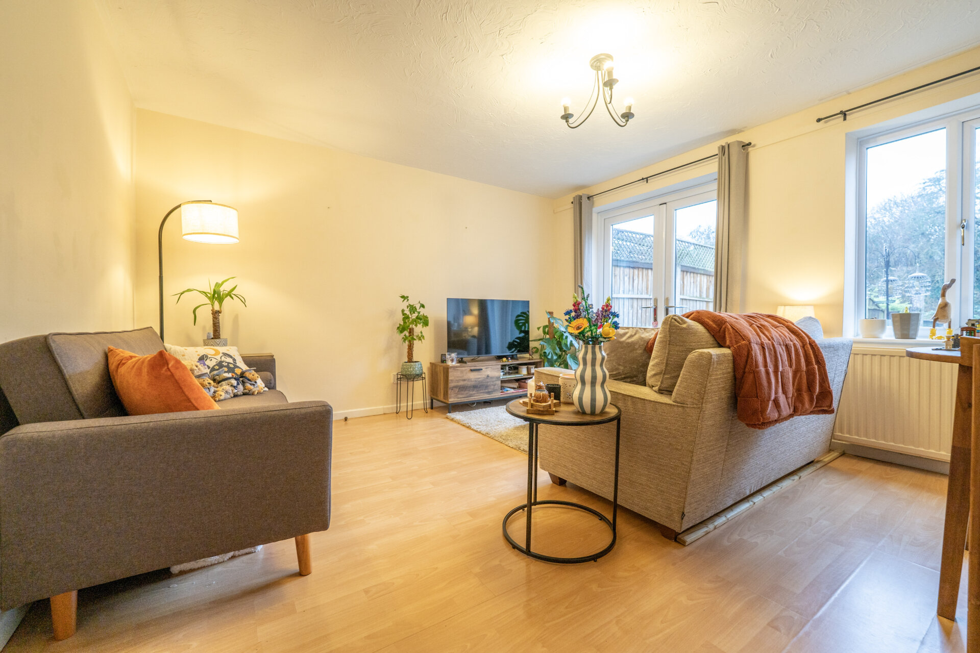 UPVC double glazed window and patio doors to the garden, radiator, laminate floor.