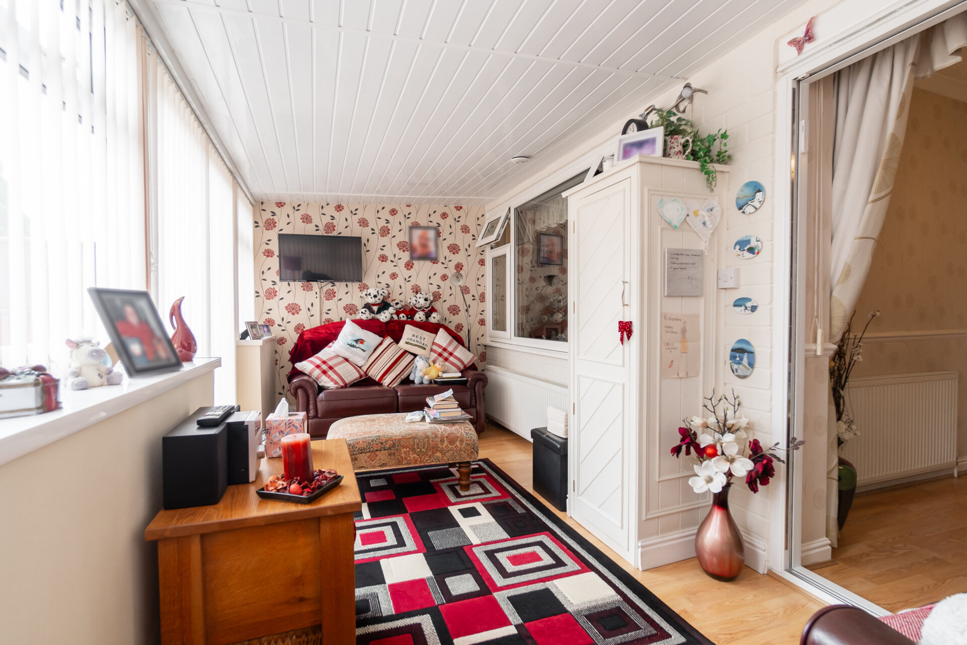Brick base with UPVC double glazed window and and sliding doors to the rear garden, power sockets, TV point, laminate floor.