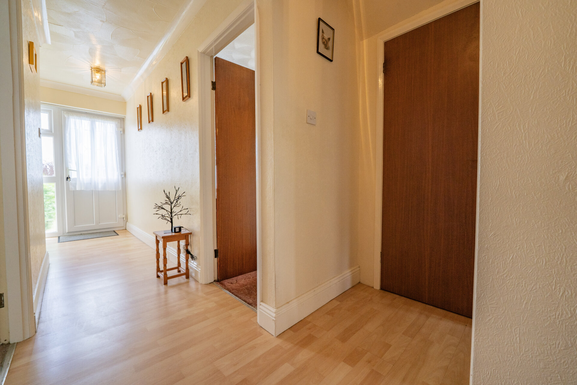 UPVC double glazed front entrance door, door to a large storage cupboard/pantry, coving to the ceiling and doors to