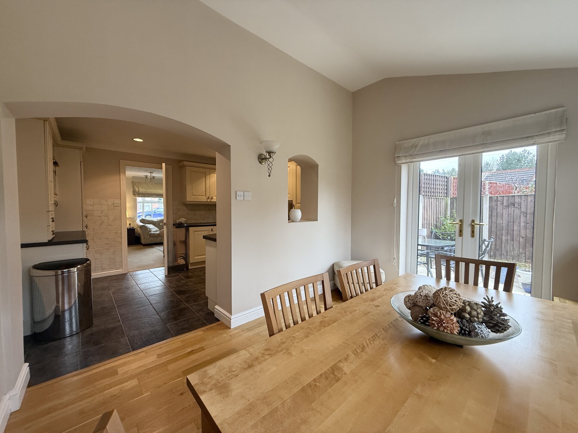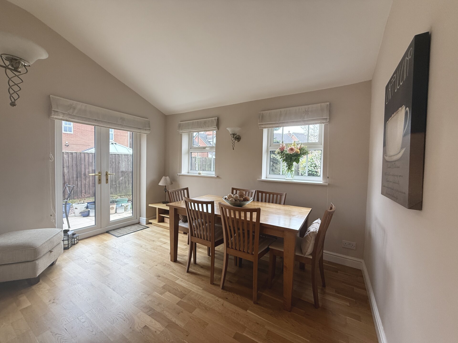 This beautifully maintained room has been thoughtfully designed and features two windows to the rear elevation, along with French doors opening onto the side patio, allowing for plenty of natural light. Currently used as a dining room, it offers versatility for a range of layouts.