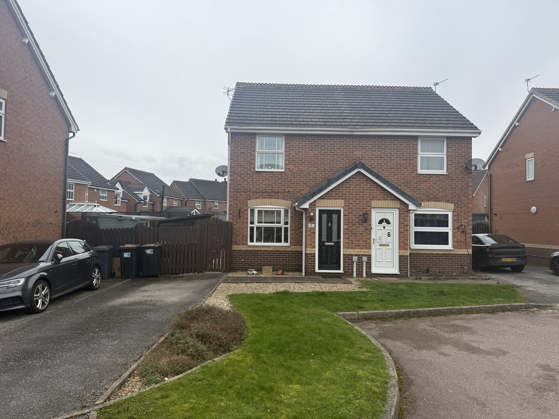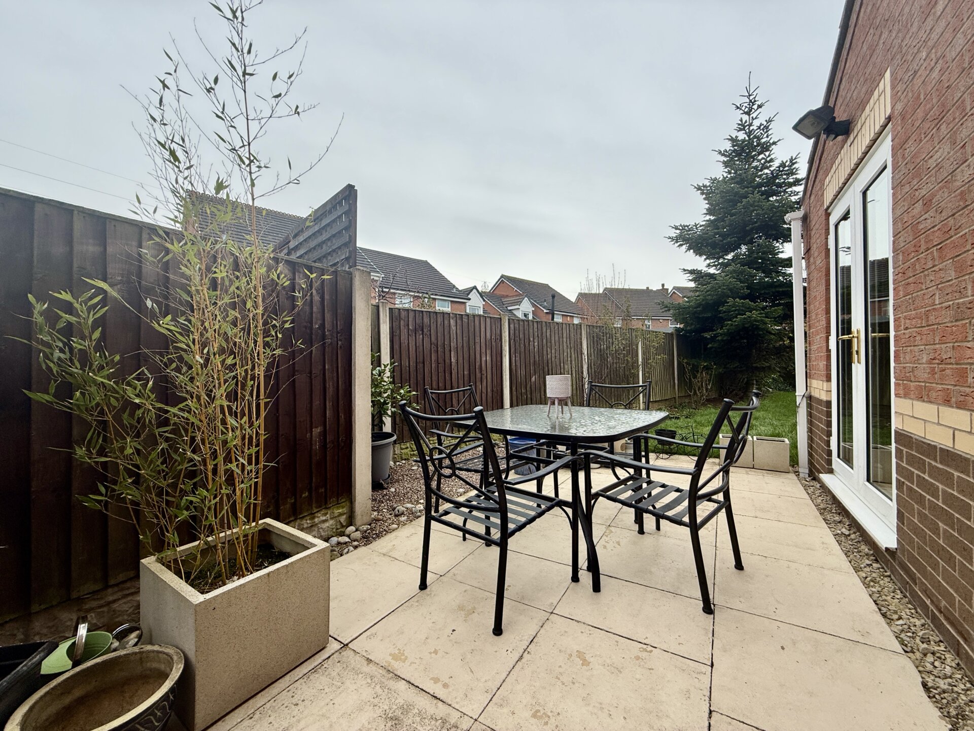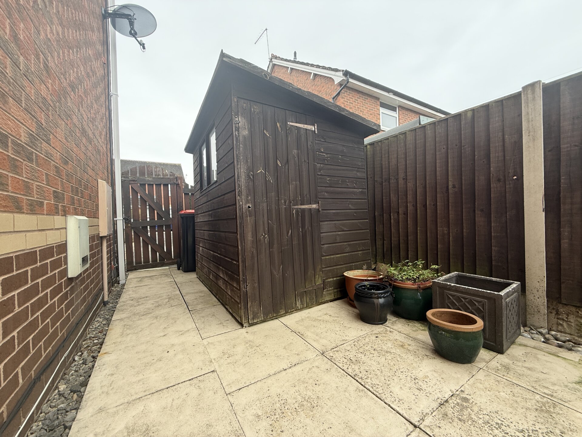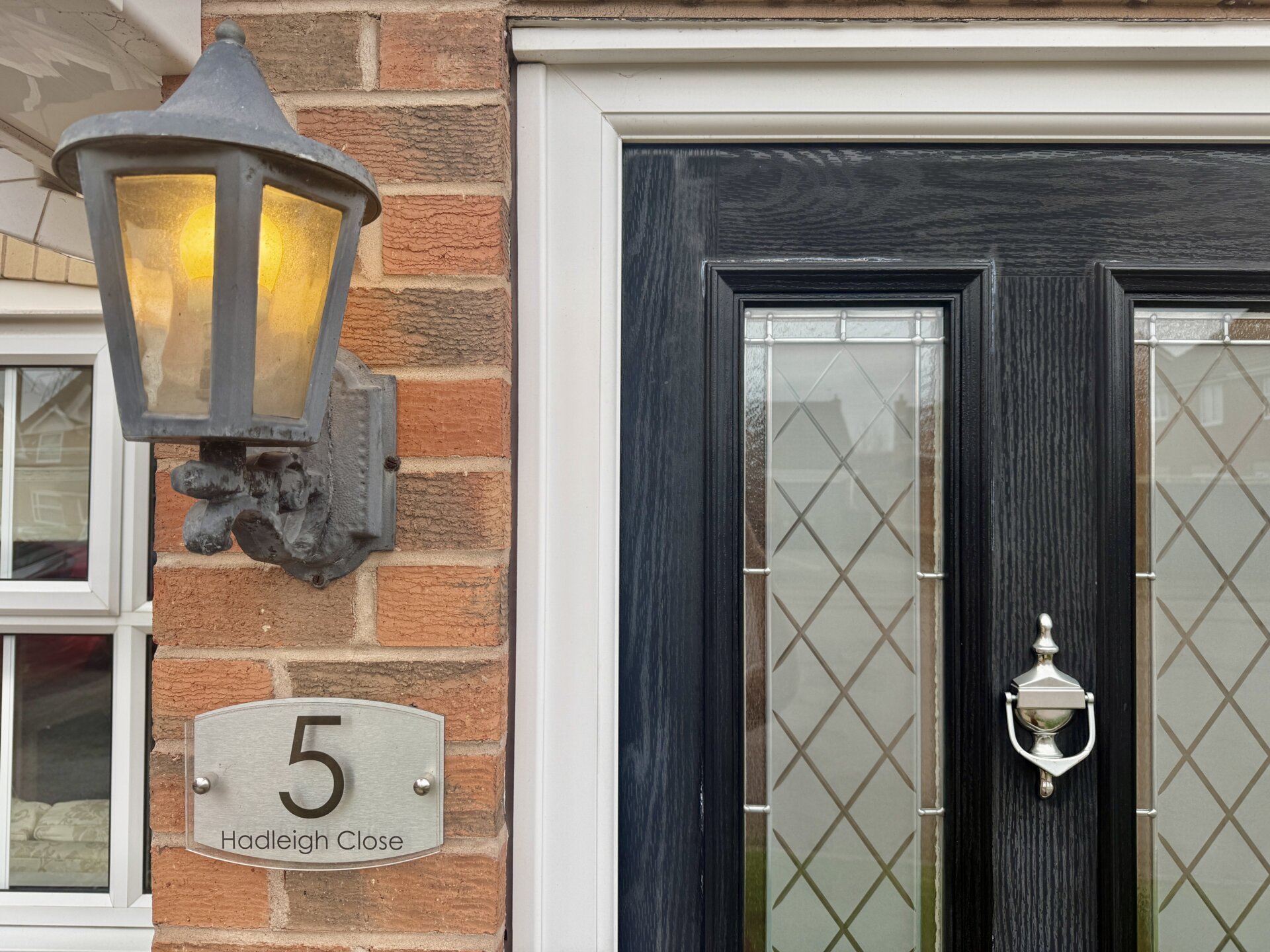 You enter the property through a composite front door with glazed panels, allowing natural light into the entrance porch, which provides a practical space for coats and shoe storage. An external light is also positioned at the front of the property.