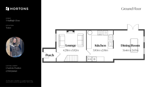 From the entrance porch, you step into a generously sized lounge featuring an open staircase and neutral décor. A feature fireplace with an electric log-burner-style heater provides a focal point. The room also benefits from a window, radiator, heating thermostat and two feature light fittings, and leads through to the centrally positioned fitted kitchen.