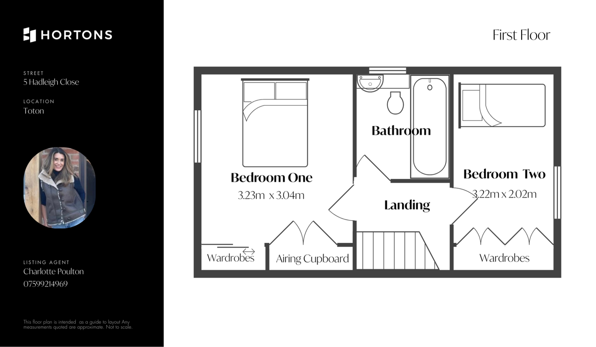 The landing features an open balustrade with handrail and provides access to two bedrooms and the bathroom. There is also access to the loft space.