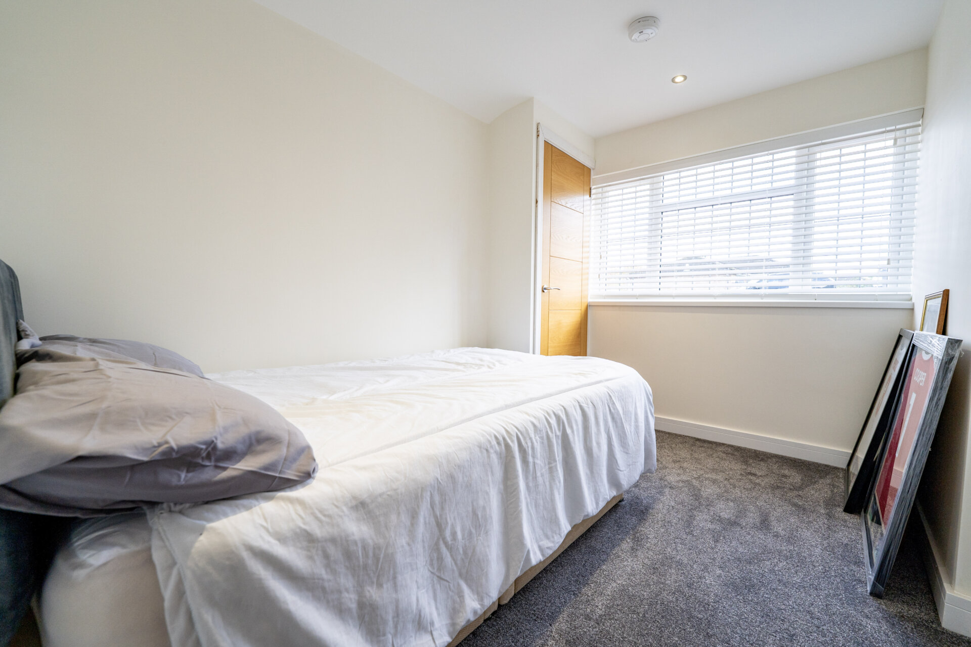 UPVC double glazed window to the side, built-in wardrobes, spotlights, speaker in the ceiling, radiator.