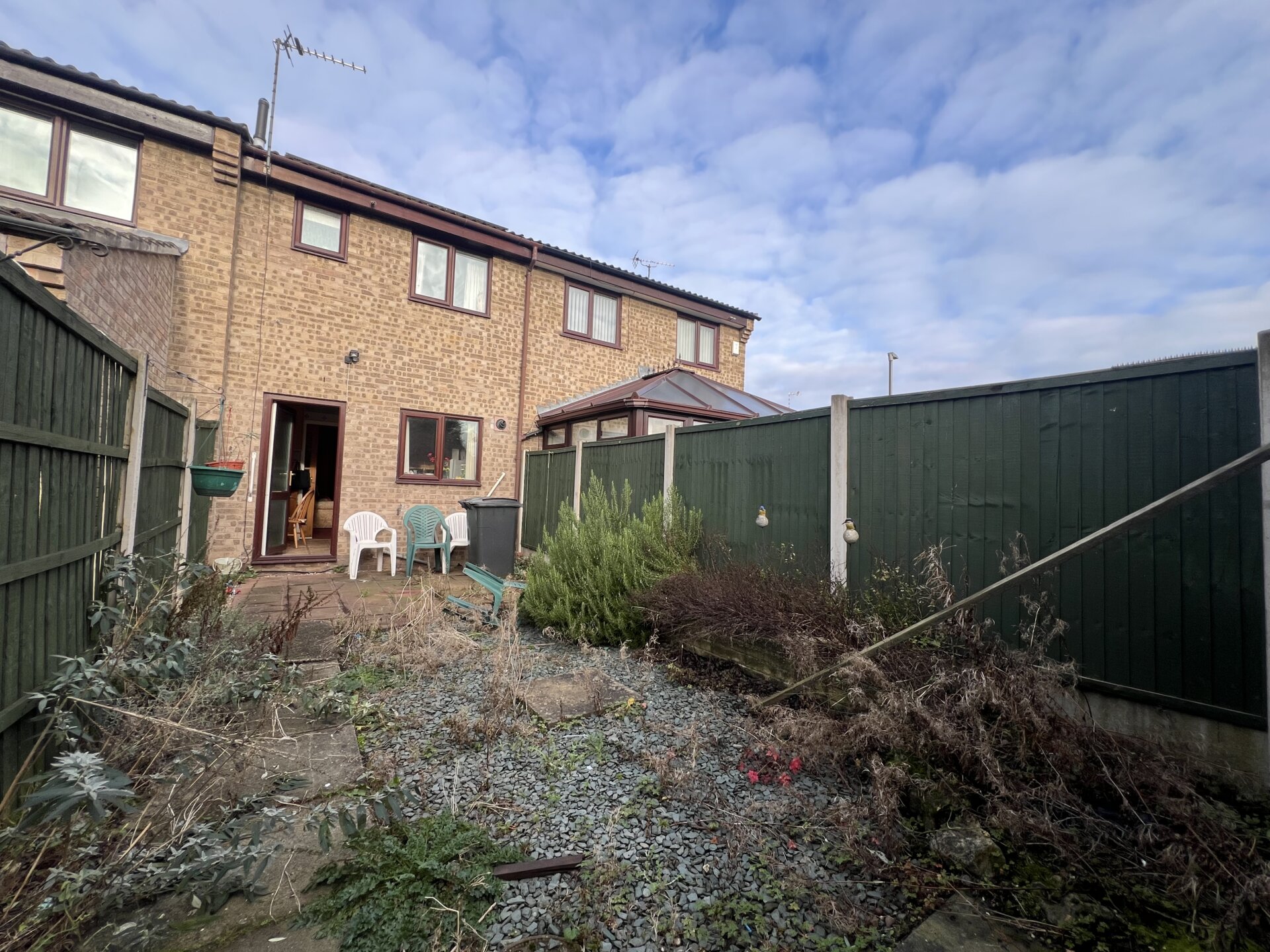 PRICE GUIDE £145-150,000 A 2-bed terraced house with solar panels, parking for 2 cars, South facing garden. Needs cosmetic upgrades. Close to schools, shops, and transport links.