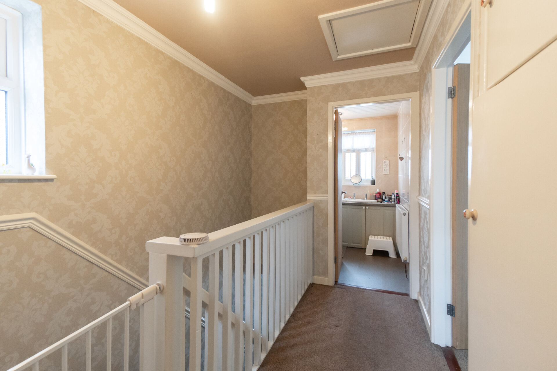 UPVC double glazed window to the side, access to the loft, door to a storage cupboard and doors to