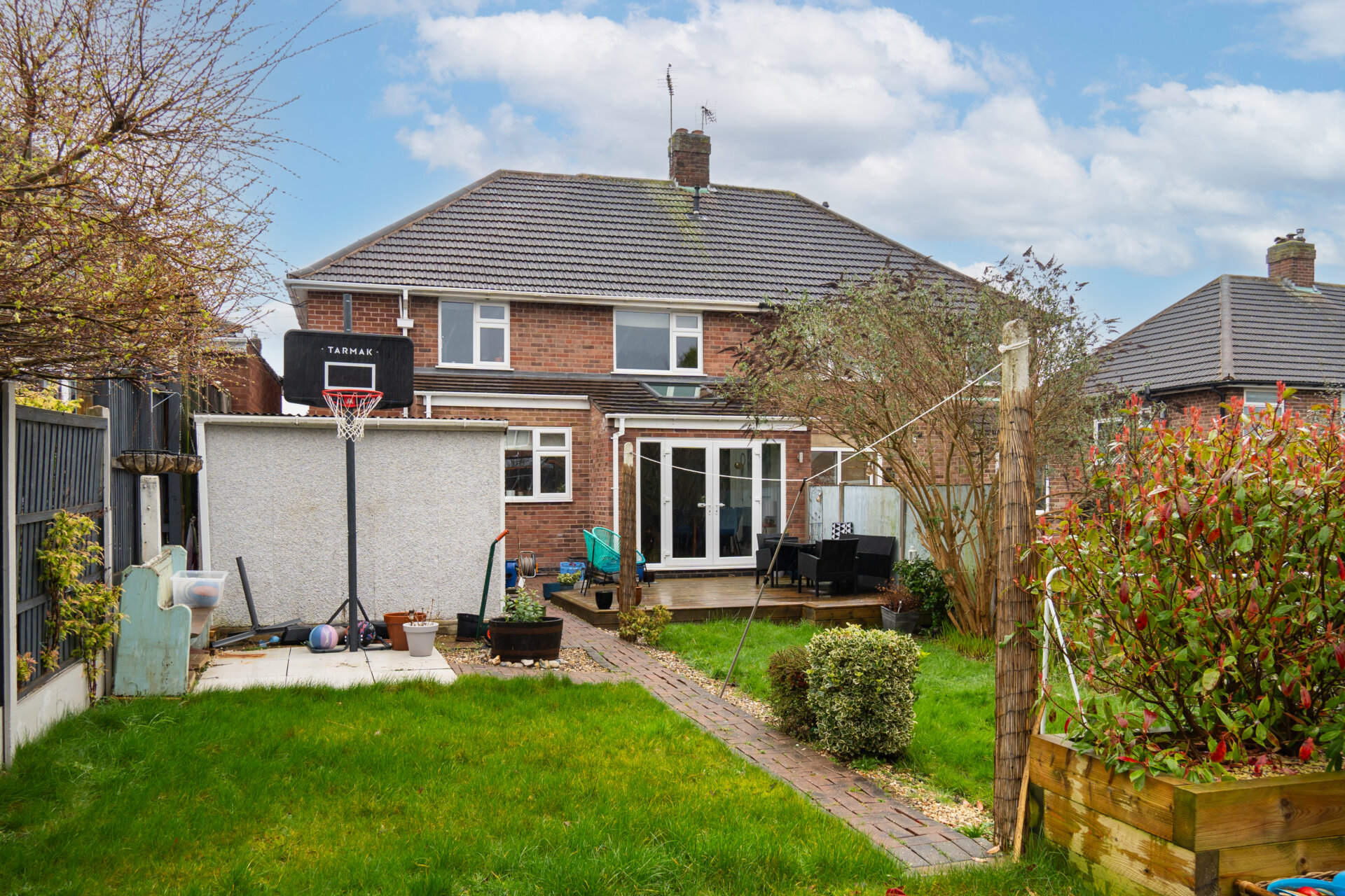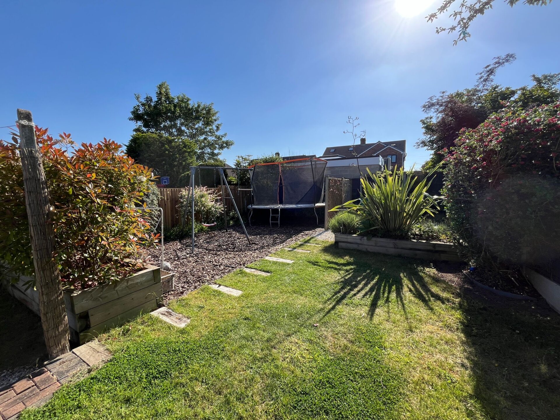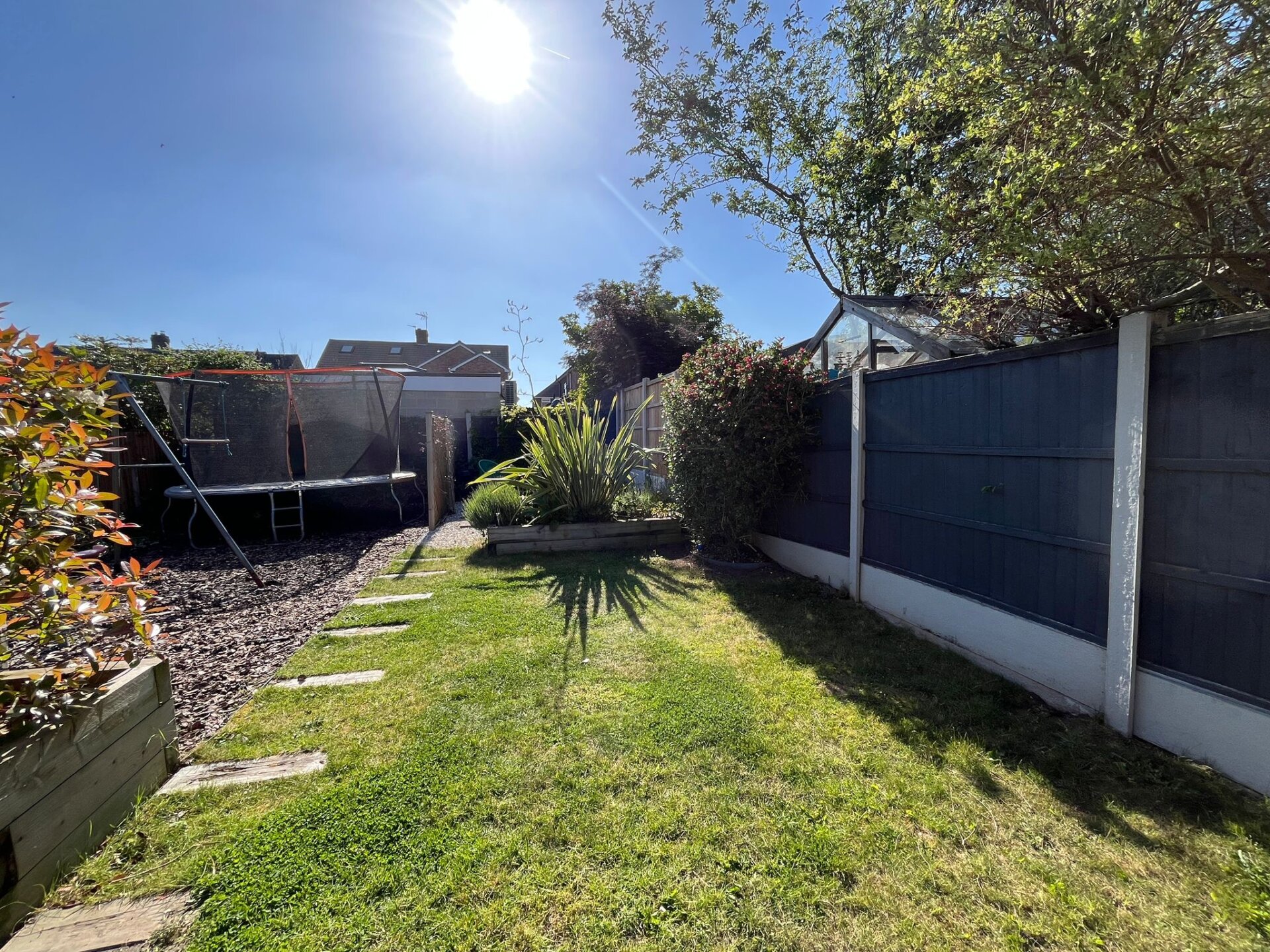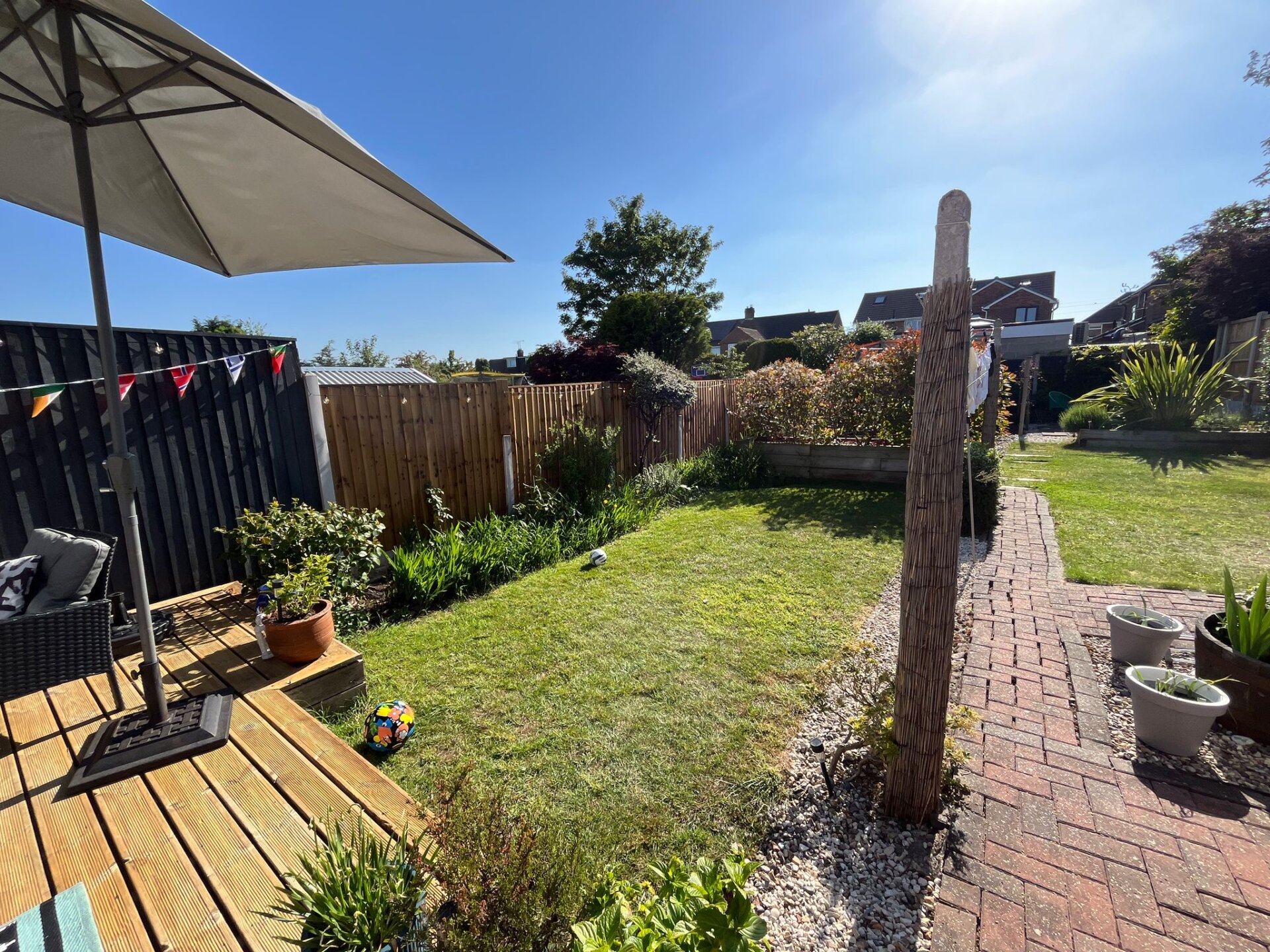 Externally, the property boasts off-road parking for two cars and an above-average-sized rear garden with both lawn and seating areas. This outdoor space also provides access to the garage.