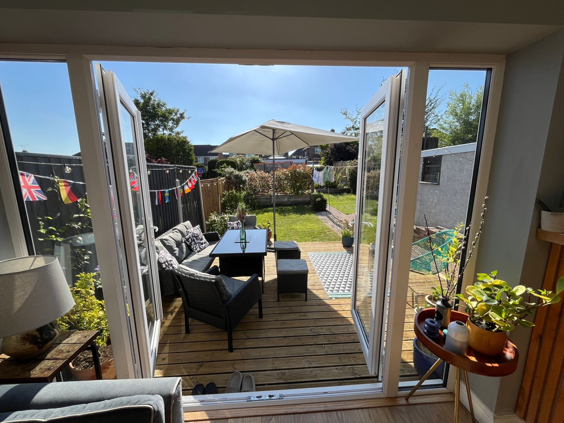 French UPVC doors and window to the rear, velux window, x2 radiators, laminate floor, coving to the ceiling