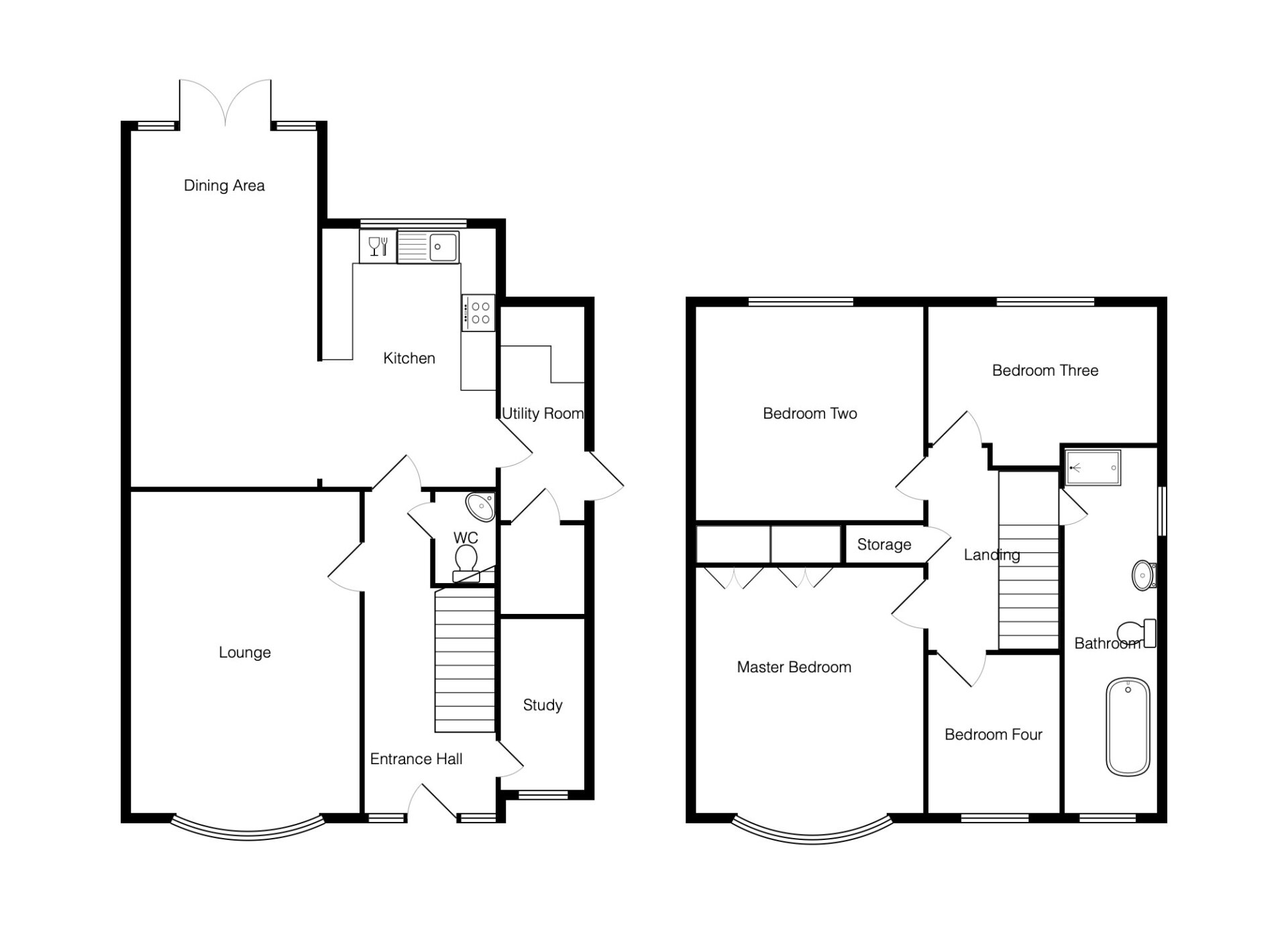 Ascending to the first floor, you'll find a generously sized landing providing access to four bedrooms, the master bedroom being equipped with built-in wardrobes and a contemporary four-piece suite with a vaulted ceiling and Velux windows.