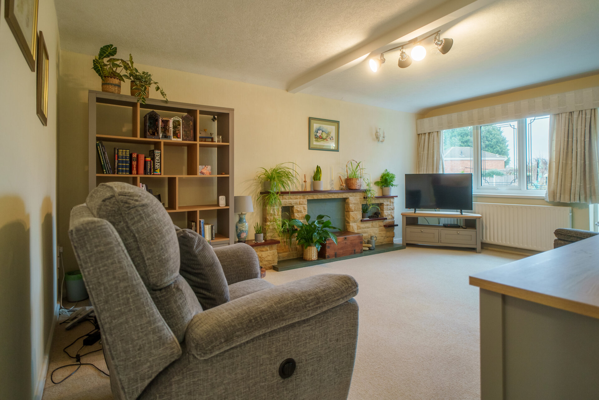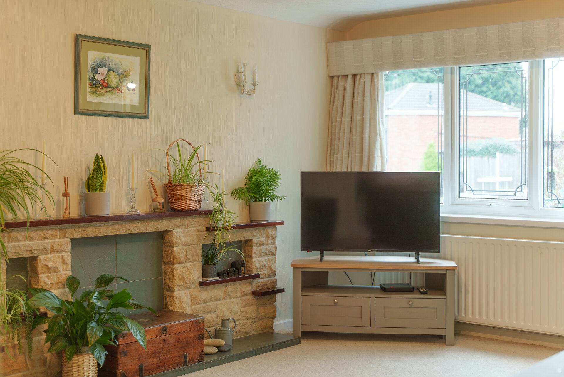 Brick fireplace, UPVC double glazed window, radiator, door to inner hallway and Kitchen