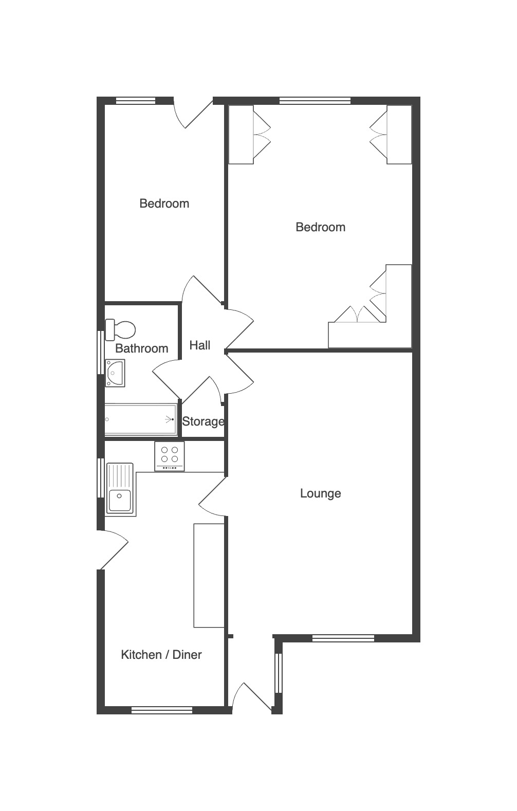 Bedroom two 12' 3" x 7' 9" (3.73m x 2.36m)