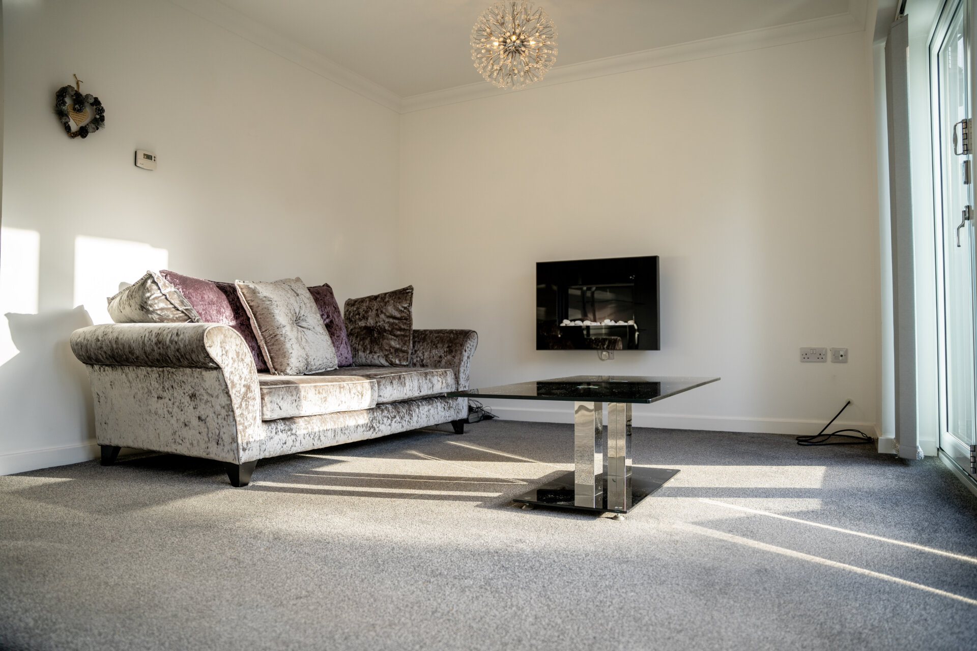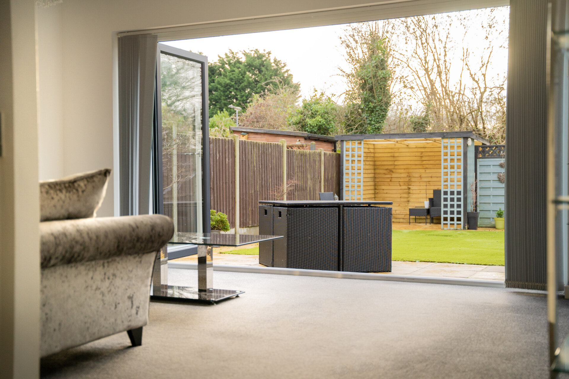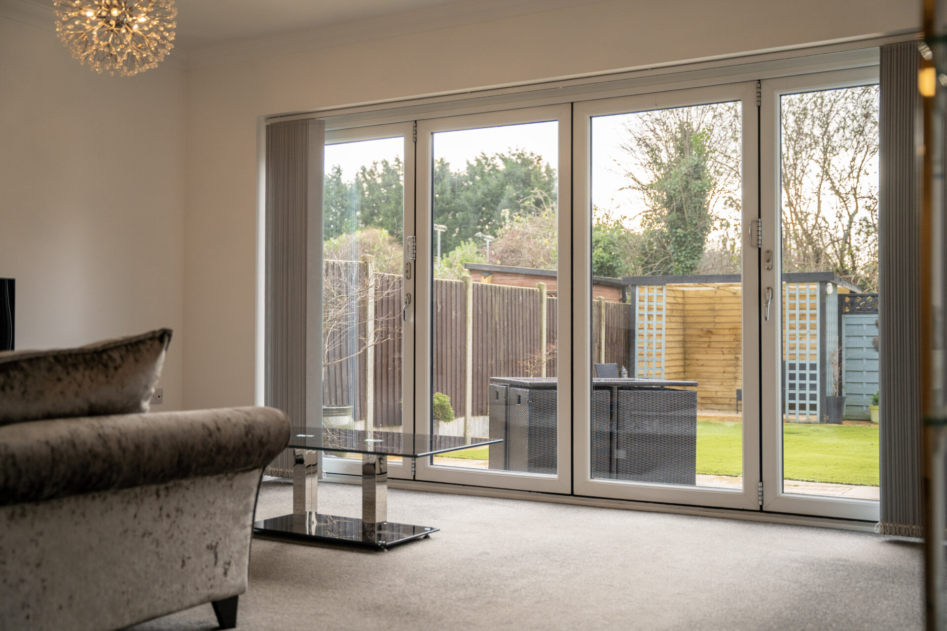 Radiator, bi-folding doors onto the rear garden, electric floating fire, TV and telephone point, coving to the ceiling.