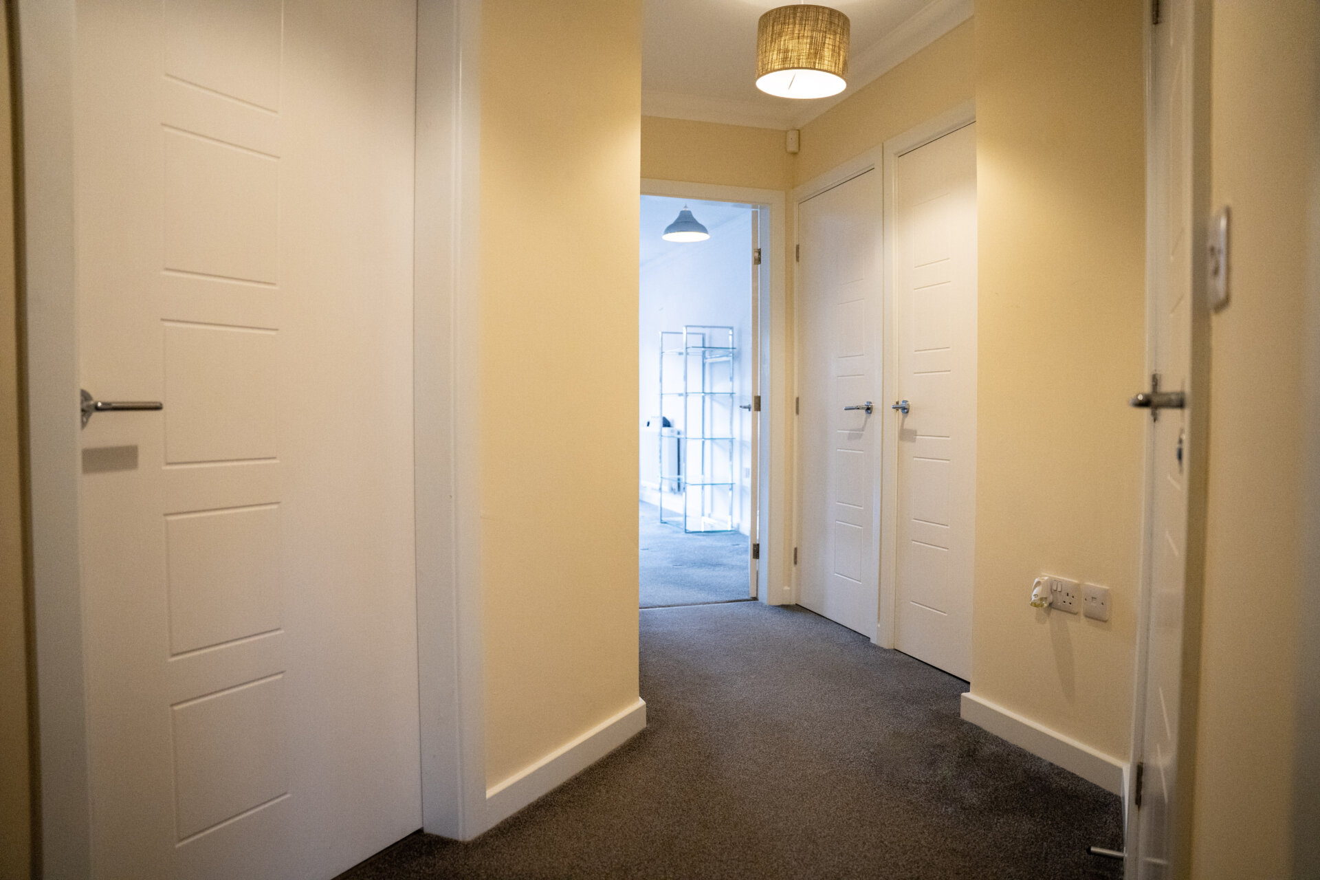 Composite front entrance door, coving to the ceiling, telephone point, x2 large storage cupboards one housing the gas central heating boiler, radiator and doors to