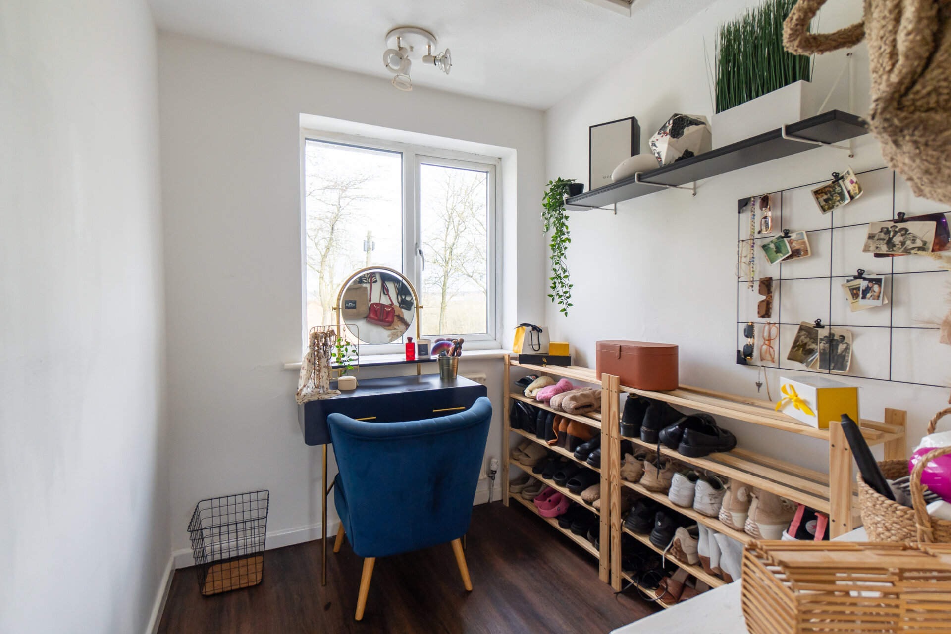 A single bedroom currently a dressing room, with laminate flooring, radiator and double glazed window to the front elevation.