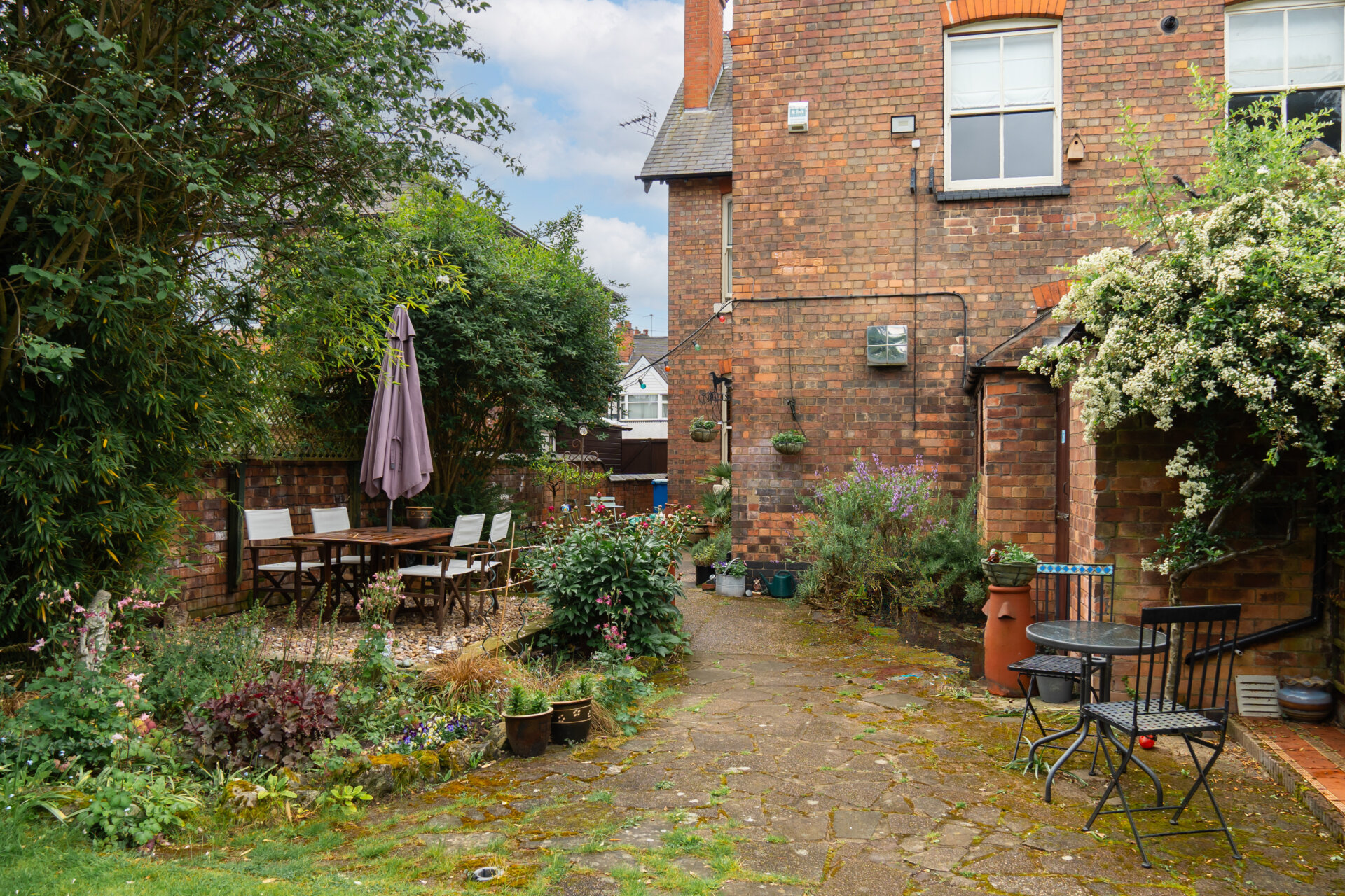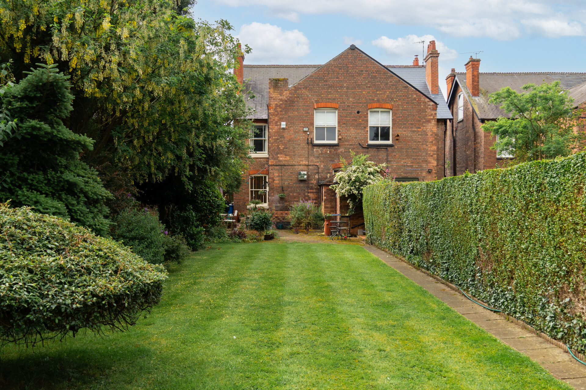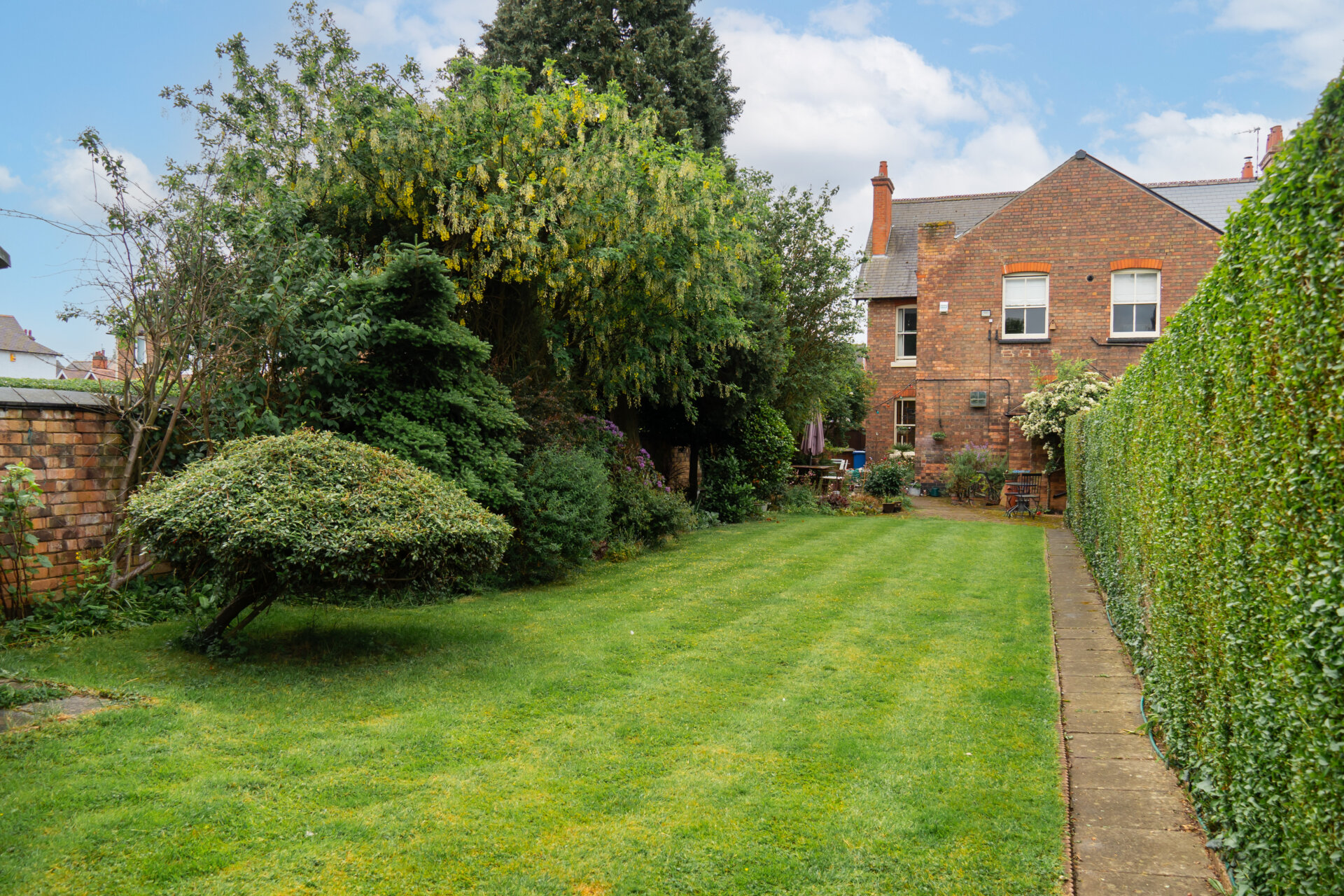 The rear garden features a patio area leading to a peaceful gravelled area space surrounded by a lush lawn and mature shrub-filled borders. Additional amenities include two brick stores - one for storage and another housing an outside WC. A gravelled driveway at the rear of the property, accessed from George Avenue via an electric sliding gate, offers parking for 3-4 vehicles. Residents will also benefit from a spacious brick garage, measuring 18'2 x 10'1 and complete with light and power. The private and established rear garden offers a tranquil retreat, ideal for outdoor relaxation or entertaining.